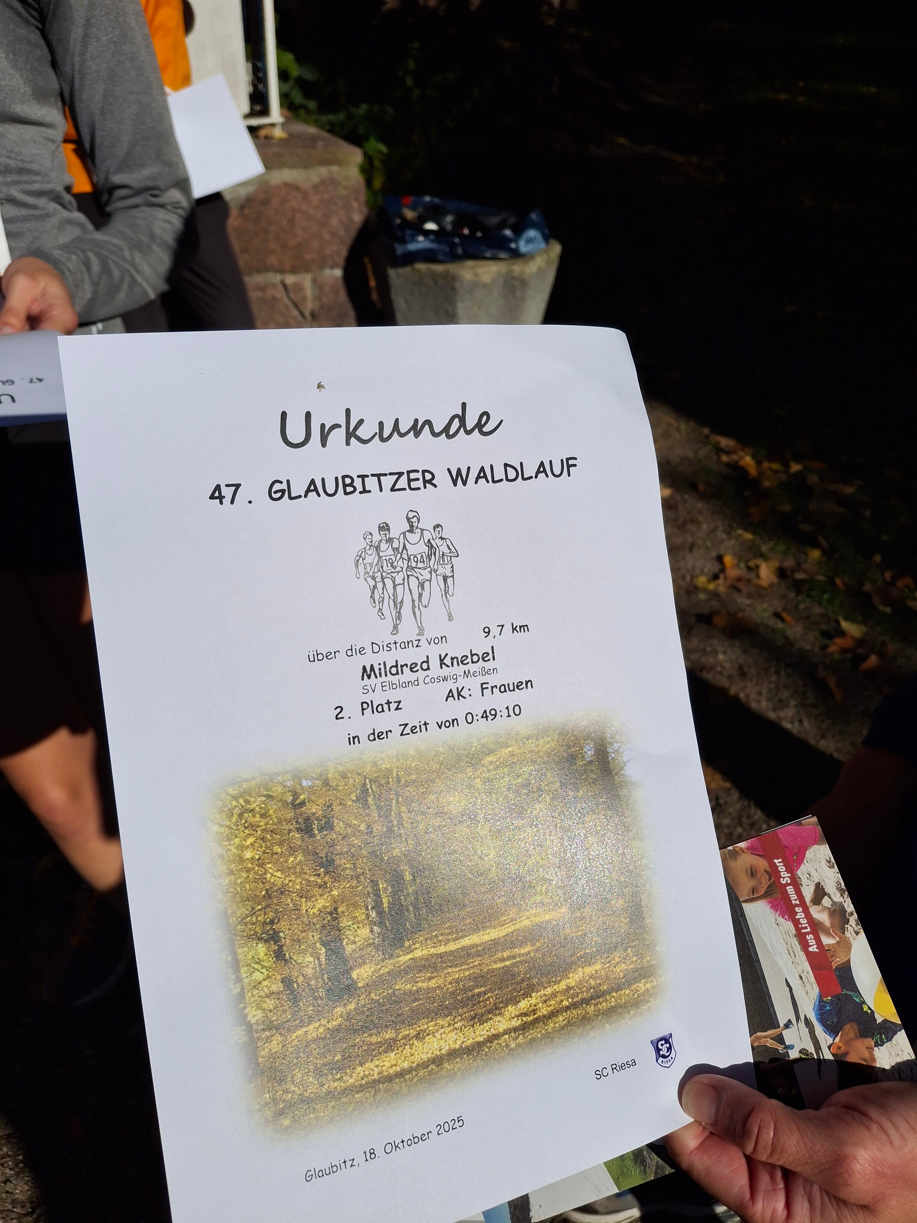 Am 18.10.25 bestand im Glaubitzer Wald die letzte Gelegenheit noch mal Punkte im Rahmen des Meißner Sparkassen – Cup 2025 zu sammeln. Diese Chance nutzten insgesamt 158 Läuferinnen und Läufer. Die Starts der 4 Laufstrecken fand am Waldbad Glaubitz statt. Es herrschte ideales Laufwetter. Veranstalter war der SC Riesa mit dem Organisator Dirk Ehrlich an der Spitze.