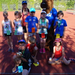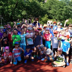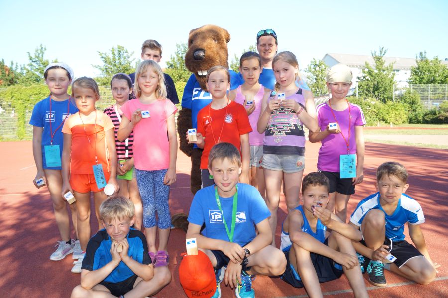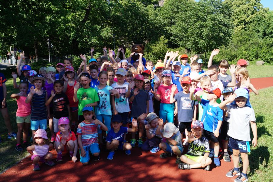 Die Abteilung Kindersport veranstaltete am 19.6. ihr Schuljahresabschlussfest auf dem Sportplatz der Leonard-Frank-Oberschule. Mit 75 Kindern war es voll auf dem Gelände. Aus 7 Sportgruppen kamen die Kinder, z.T. brachten sie noch ein Geschwisterkind mit. Von 2 bis 10 Jahren wollten alle dabei sein. Sogar Elbi war da und begeisterte die Sportler.