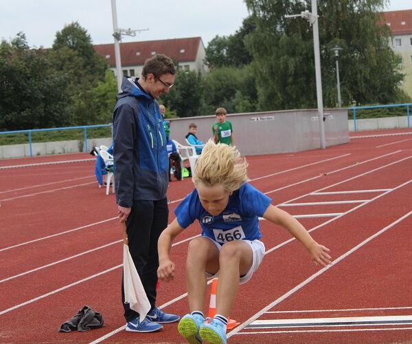 Aufgeregt, nervös und mit kleinen Zweifeln an die eigene Leistungsfähigkeit nahmen Anton Carolus (M11) und Jules Hempel (M13) am Sonntag die letzte Möglichkeit eines Mehrkampfes in der Bergstadt Freiberg wahr. Beide mussten zuerst über die Hürden und als diese Disziplin wunderbar geklappt hat, war der Start für die Punktejagd eröffnet. Die Jungs wuchsen mit jedem neuen Start über sich hinaus, lieferten neue Bestleistungen und hervorragende Ergebnisse ab und schnell war klar: heute können die Punkte für den E-Kader erreicht werden. Zum Glück regnete es nicht, der Wind blieb ruhig und die Temperaturen waren noch im annehmbaren Bereich. So wurde Punkt um Punkt eingesammelt und am Ende reichte es bei beiden klar für die Normerfüllung. Glückliche Gesichter bei Sportler und Trainer waren der Lohn.