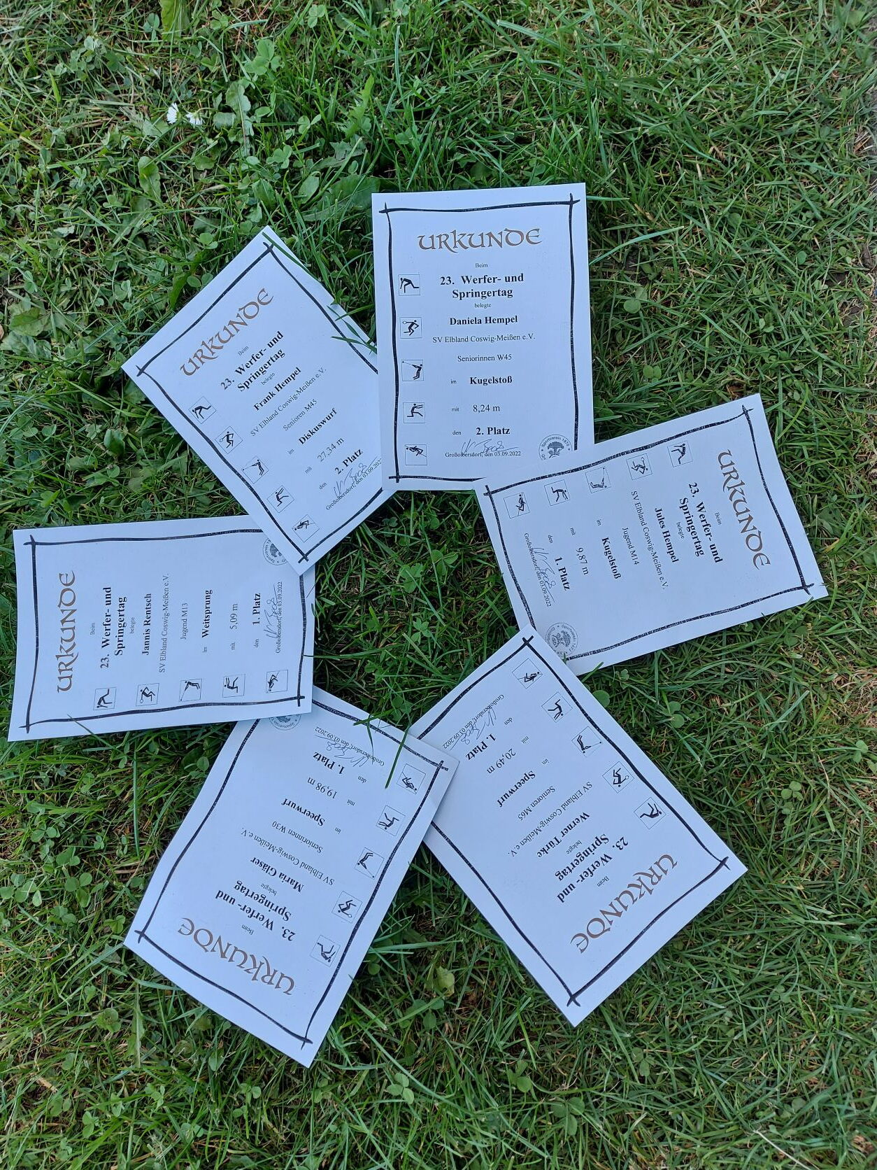 Bereits traditionell fahren Elbländer Anfang September (03.09.) nach Großolbersdorf zum Werfer- und Springermeeting, welches bereits zum 23.Mal und bei bestem Wetter, aber doch am Morgen noch kühlen Temperaturen, stattfand. Sechs Athletinnen/Athleten fighteten um jeden Zentimeter in den Wurf- und Stoßdisziplinen. Der Jüngste war Jannis Rentsch (M13), welcher sich als Einziger einer Sprungdisziplin annahm und mit 5,09 m das erste Mal über fünf Meter im Weitsprung kam. Ebenso knackte er im Kugelstoßen die elf Metermarke (3 kg - 11,35 kg). Die ein Kilo-Diskusscheibe warf er auf starke 32,10 m. Damit hat er gleichzeitig einen neuen Vereinsrekord in seiner Altersklasse aufgestellt und löst Alexander Czudaj ab. Jules Hempel (M14), welcher bereits eine vier Kilokugel stoßen muss, konnte diese auf eine Weite von 9,87 m bringen. Den Diskus warf er auf 29,02 m. Da Jules verletzungsbedingt nicht viel trainieren konnte, sind seine Leistungen als durchaus ansprechend einzuordnen – auch wenn er selbst nicht ganz zufrieden damit war.