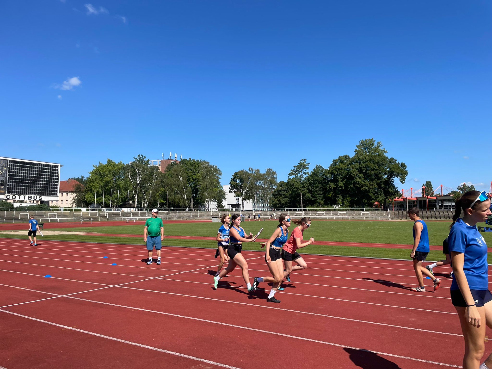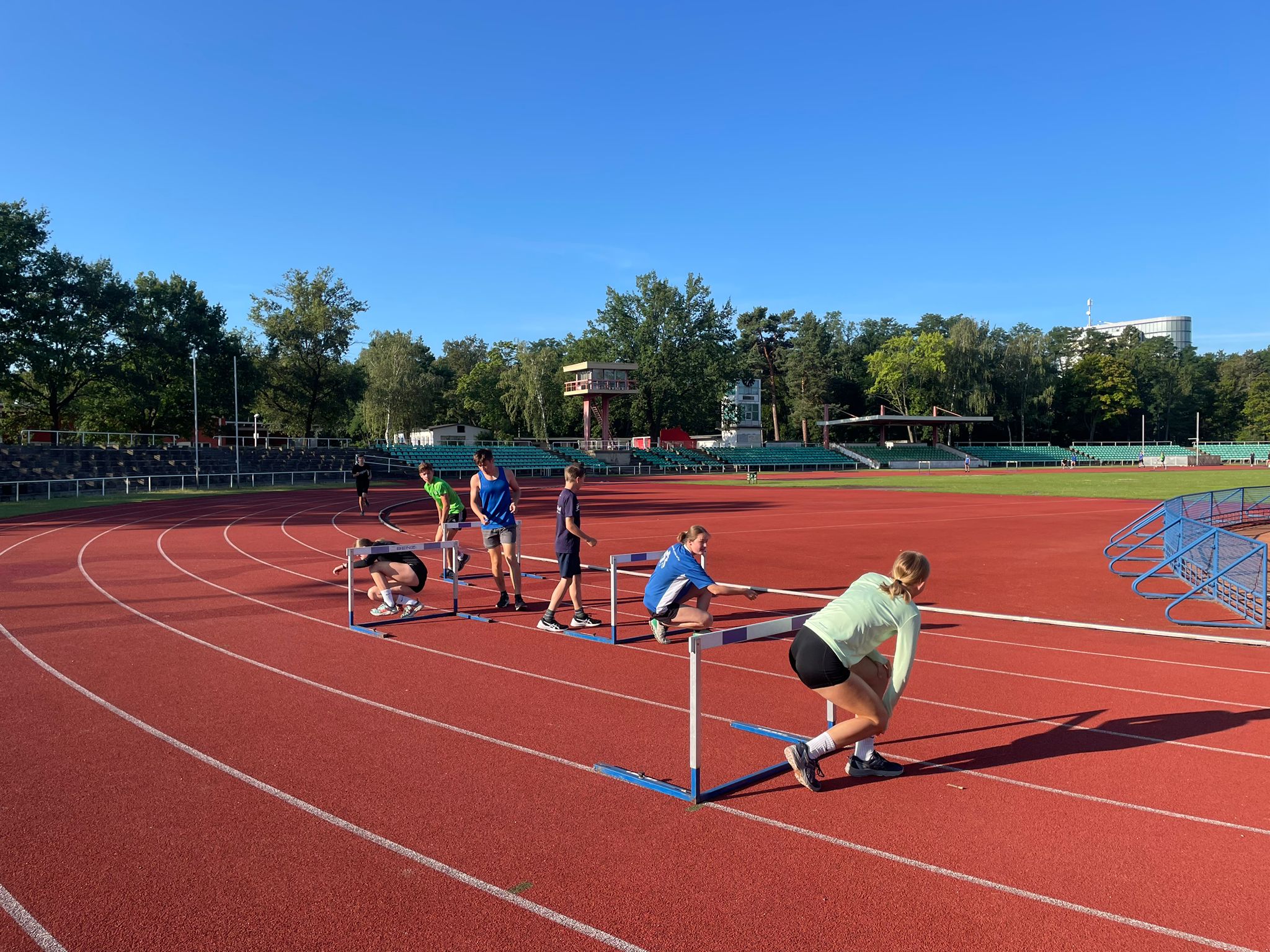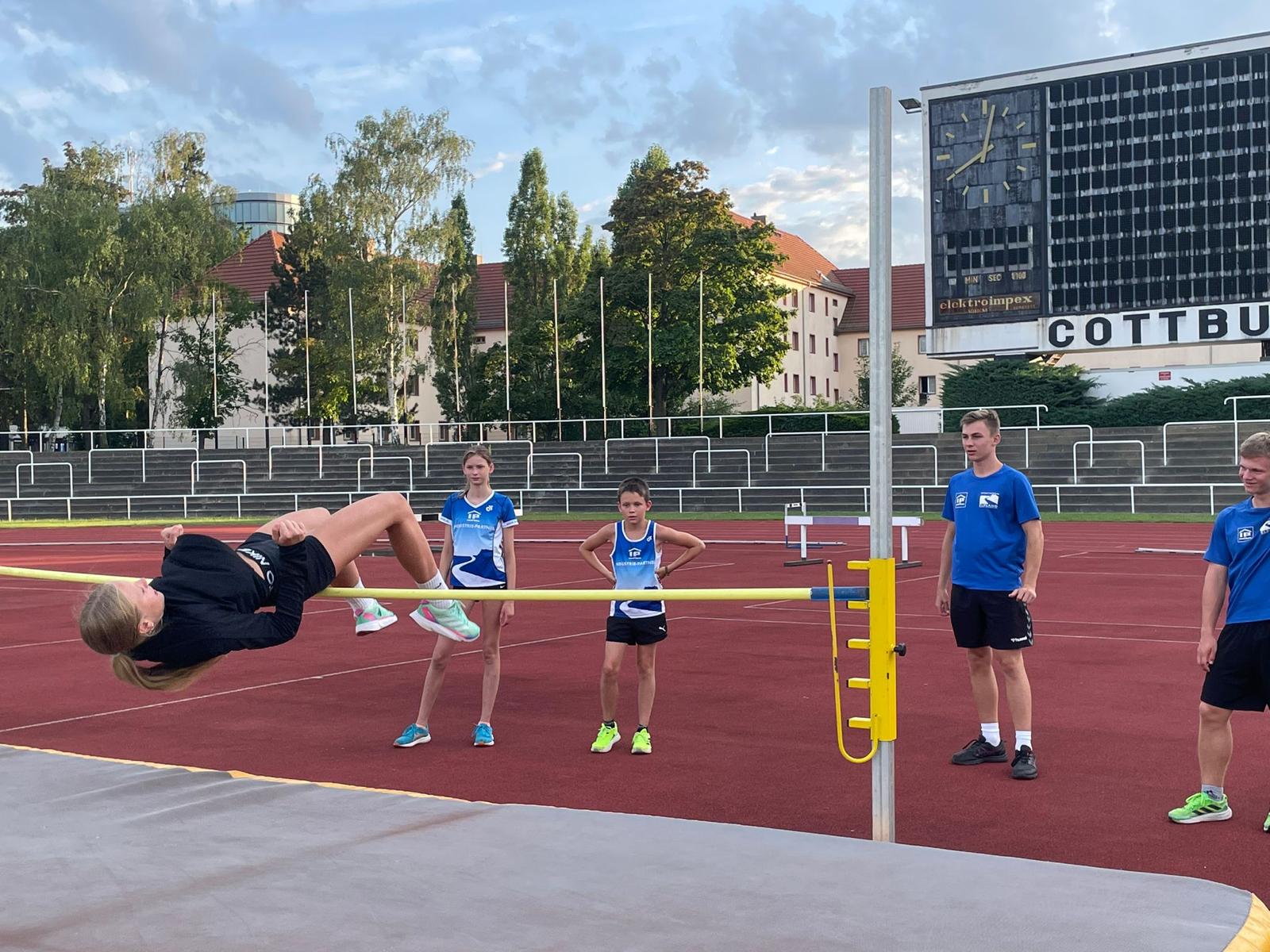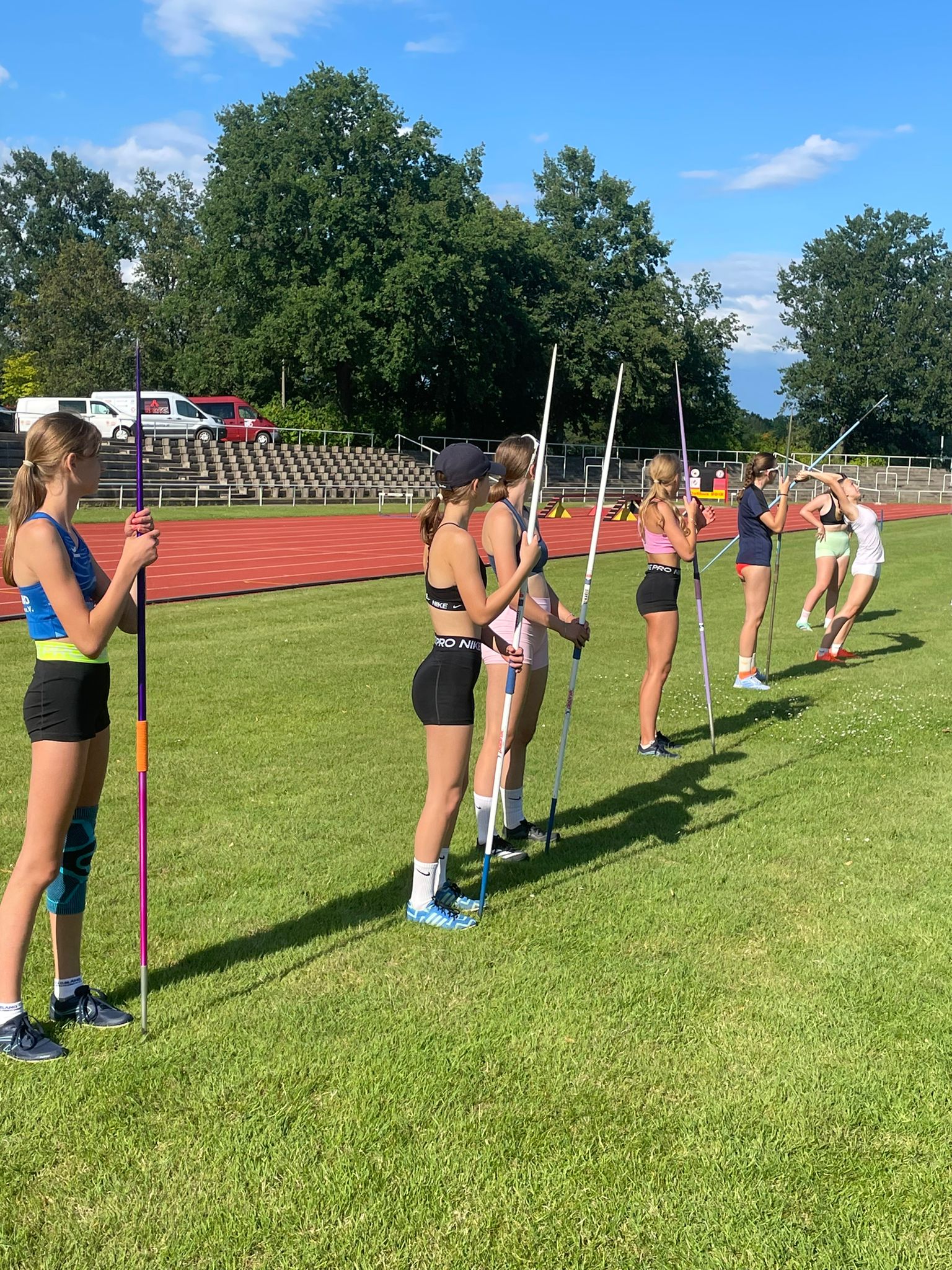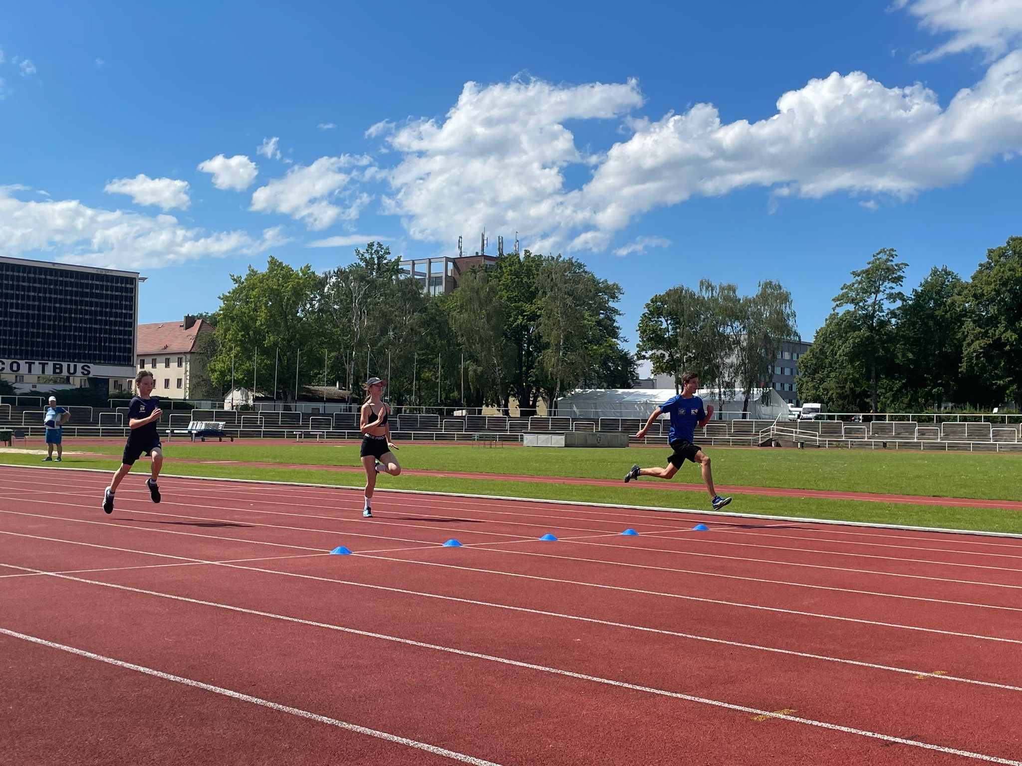 Wir hatten in Cottbus die wunderbare Möglichkeit, Disziplinen zu trainieren, die in Coswig nicht möglich sind, wie z.B. Stabhochsprung. Diese Gelegenheit haben wir natürlich genutzt. Auch sonst war viel Individuelles dabei: Diskus- und Speerwurftraining, Weit- und Dreisprung, Hürden, Startblockübungen oder Sprint. Alles gut dosiert, denn es war wirklich sehr warm.
