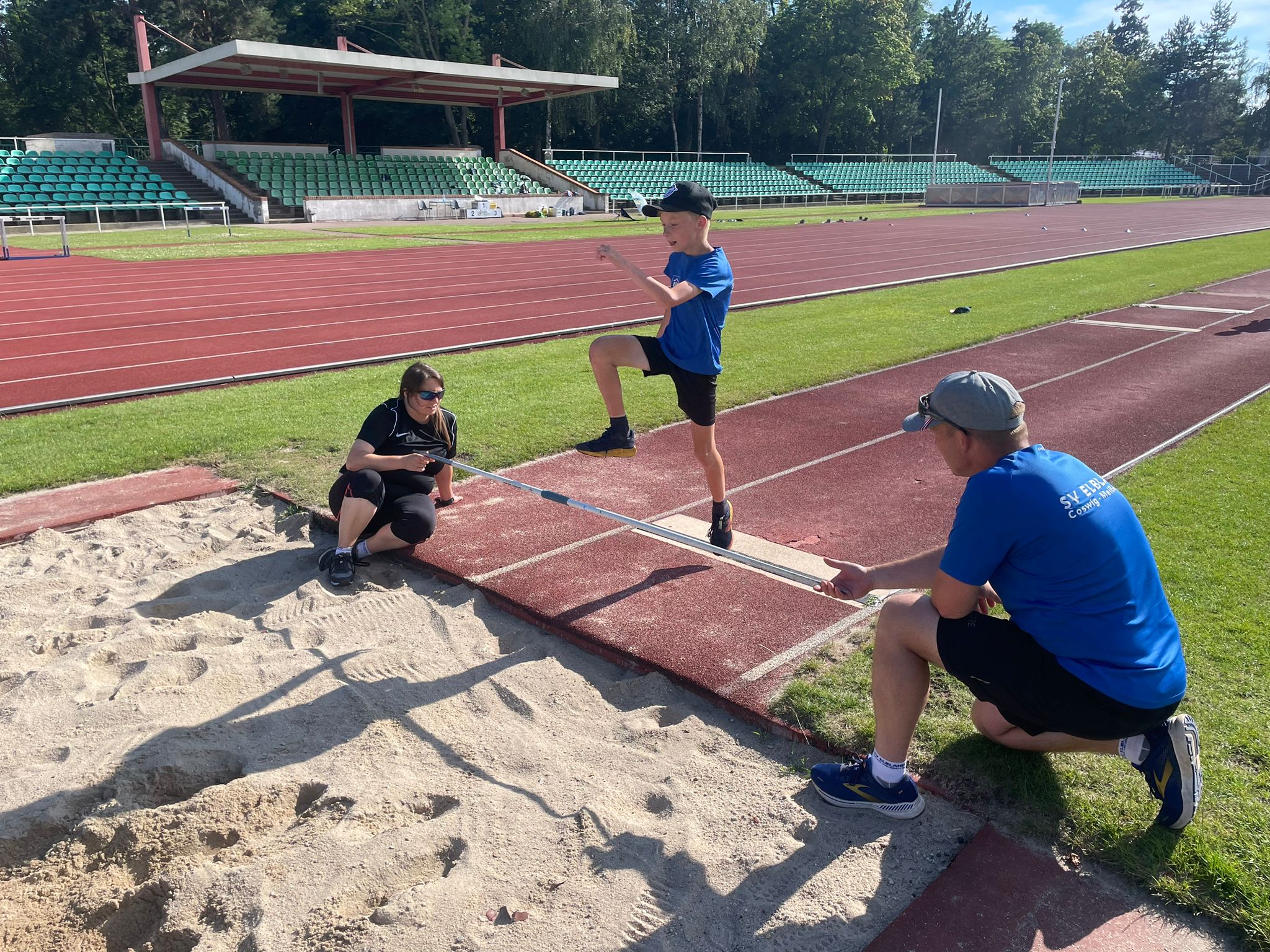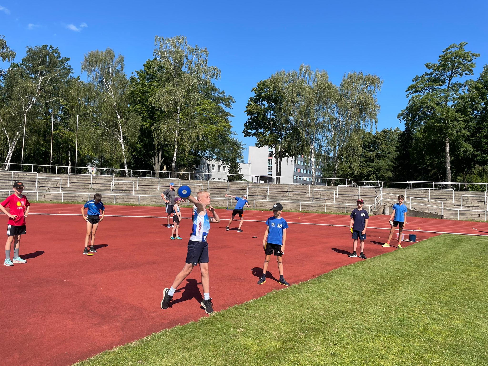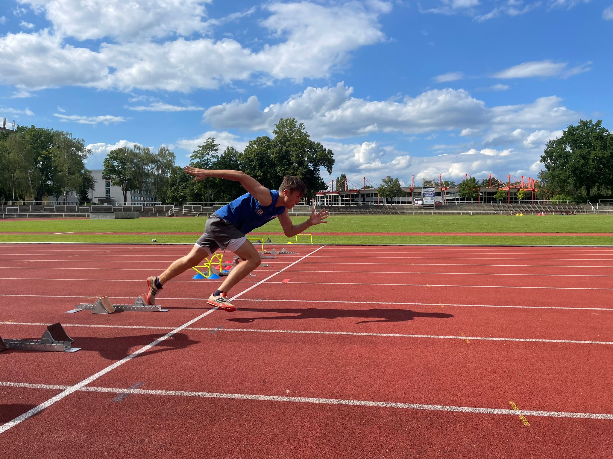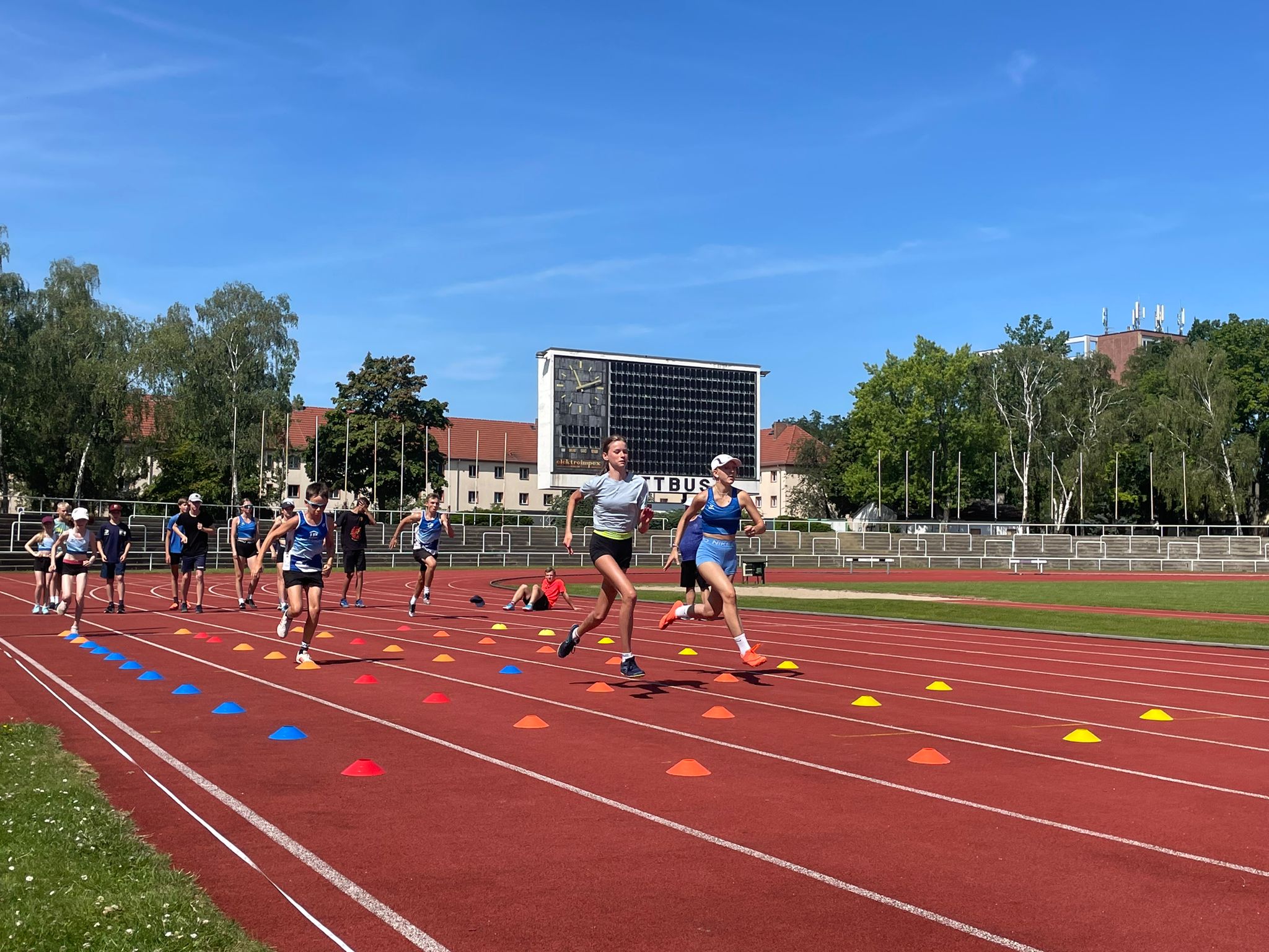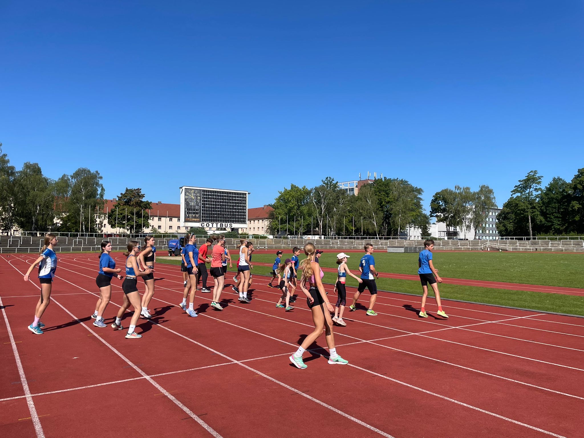 Wir hatten in Cottbus die wunderbare Möglichkeit, Disziplinen zu trainieren, die in Coswig nicht möglich sind, wie z.B. Stabhochsprung. Diese Gelegenheit haben wir natürlich genutzt. Auch sonst war viel Individuelles dabei: Diskus- und Speerwurftraining, Weit- und Dreisprung, Hürden, Startblockübungen oder Sprint. Alles gut dosiert, denn es war wirklich sehr warm.