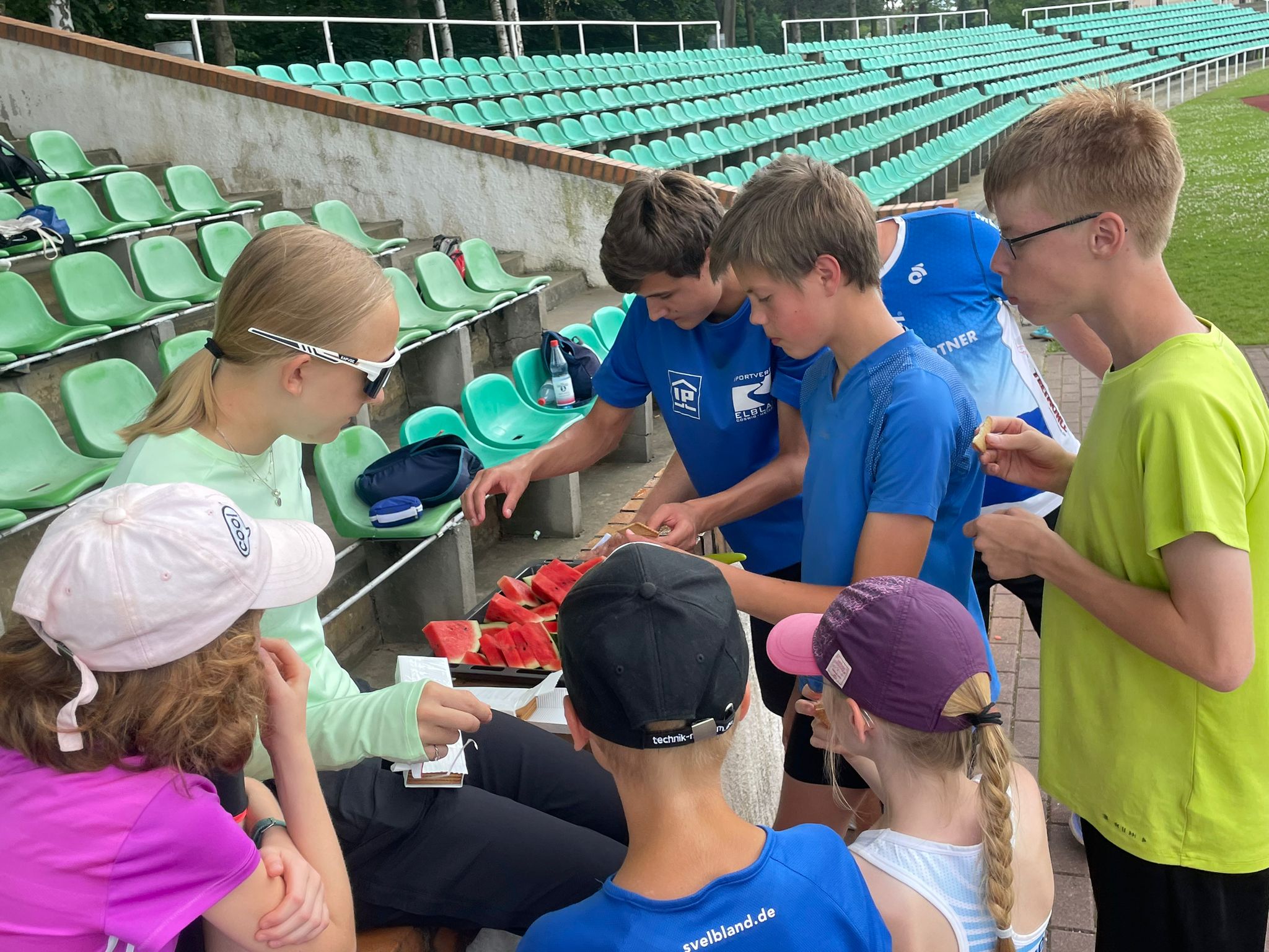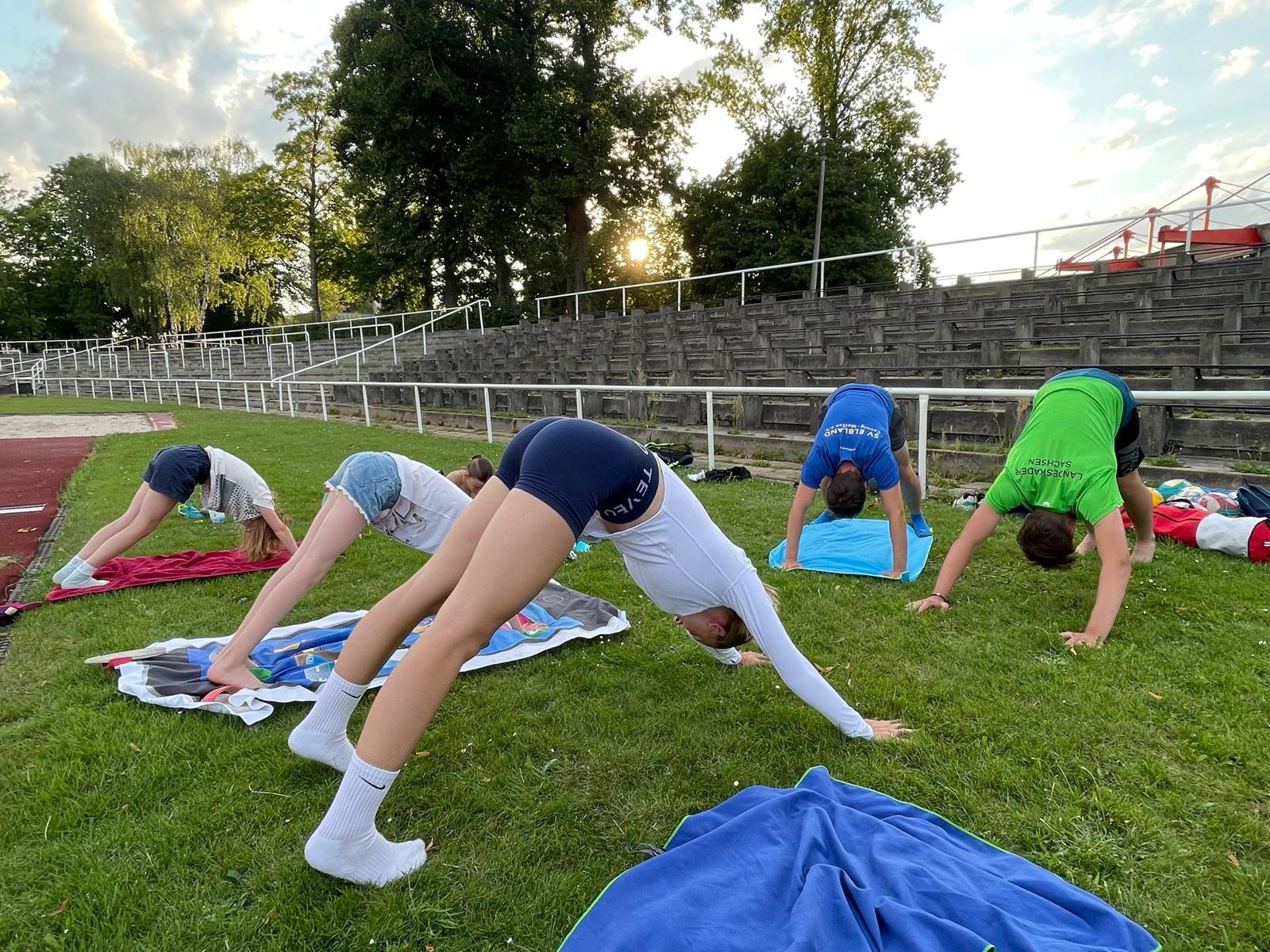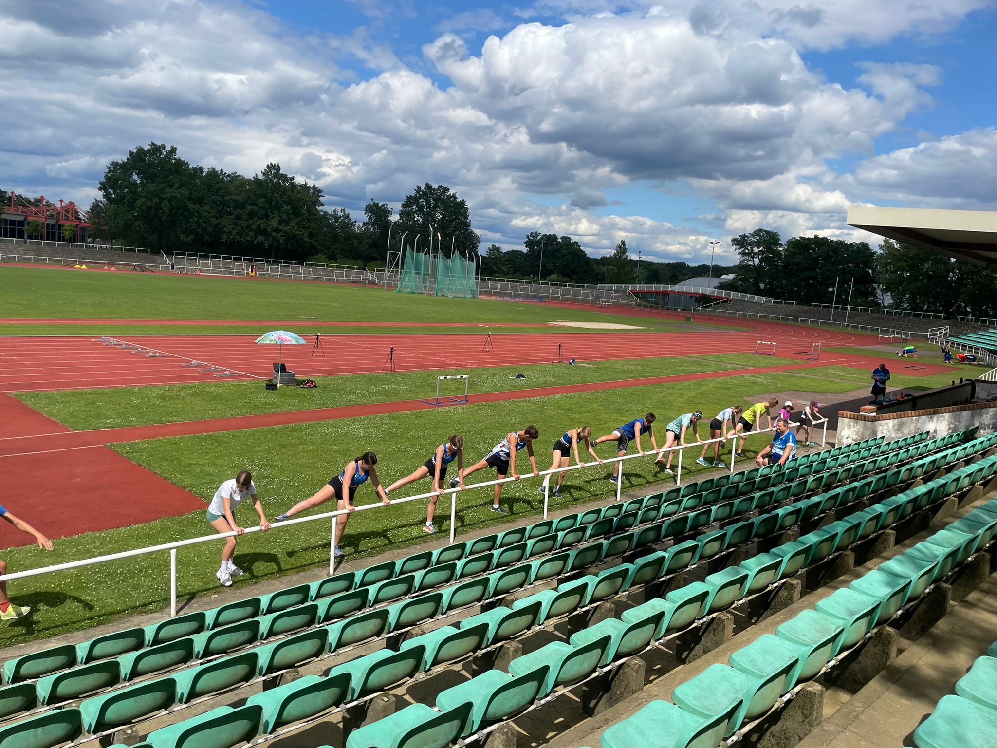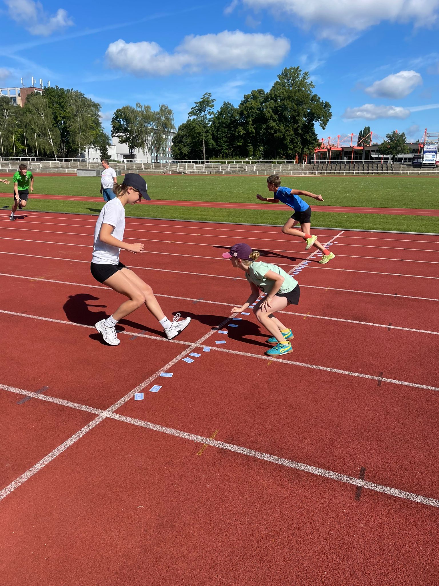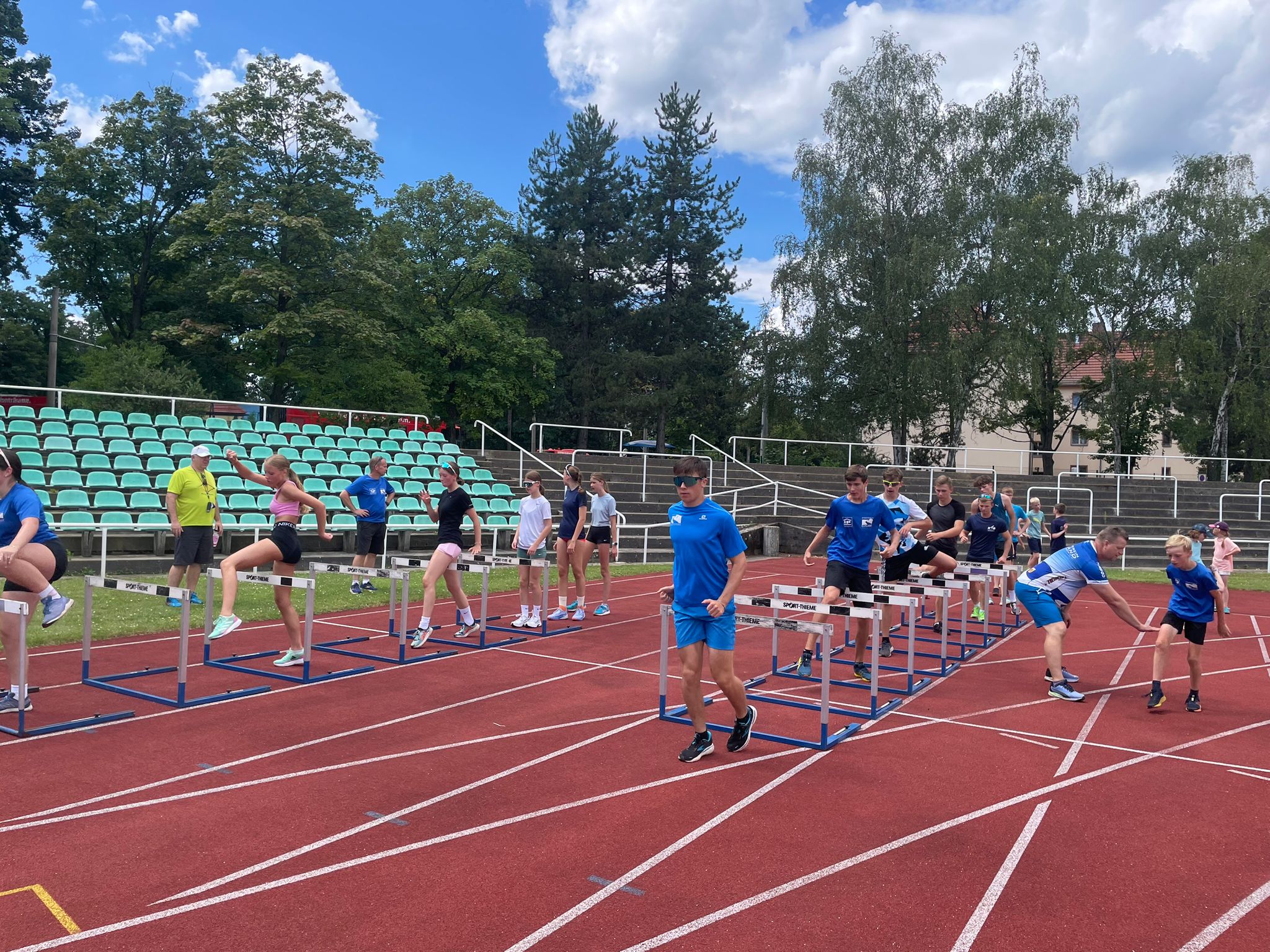 Wir hatten in Cottbus die wunderbare Möglichkeit, Disziplinen zu trainieren, die in Coswig nicht möglich sind, wie z.B. Stabhochsprung. Diese Gelegenheit haben wir natürlich genutzt. Auch sonst war viel Individuelles dabei: Diskus- und Speerwurftraining, Weit- und Dreisprung, Hürden, Startblockübungen oder Sprint. Alles gut dosiert, denn es war wirklich sehr warm.