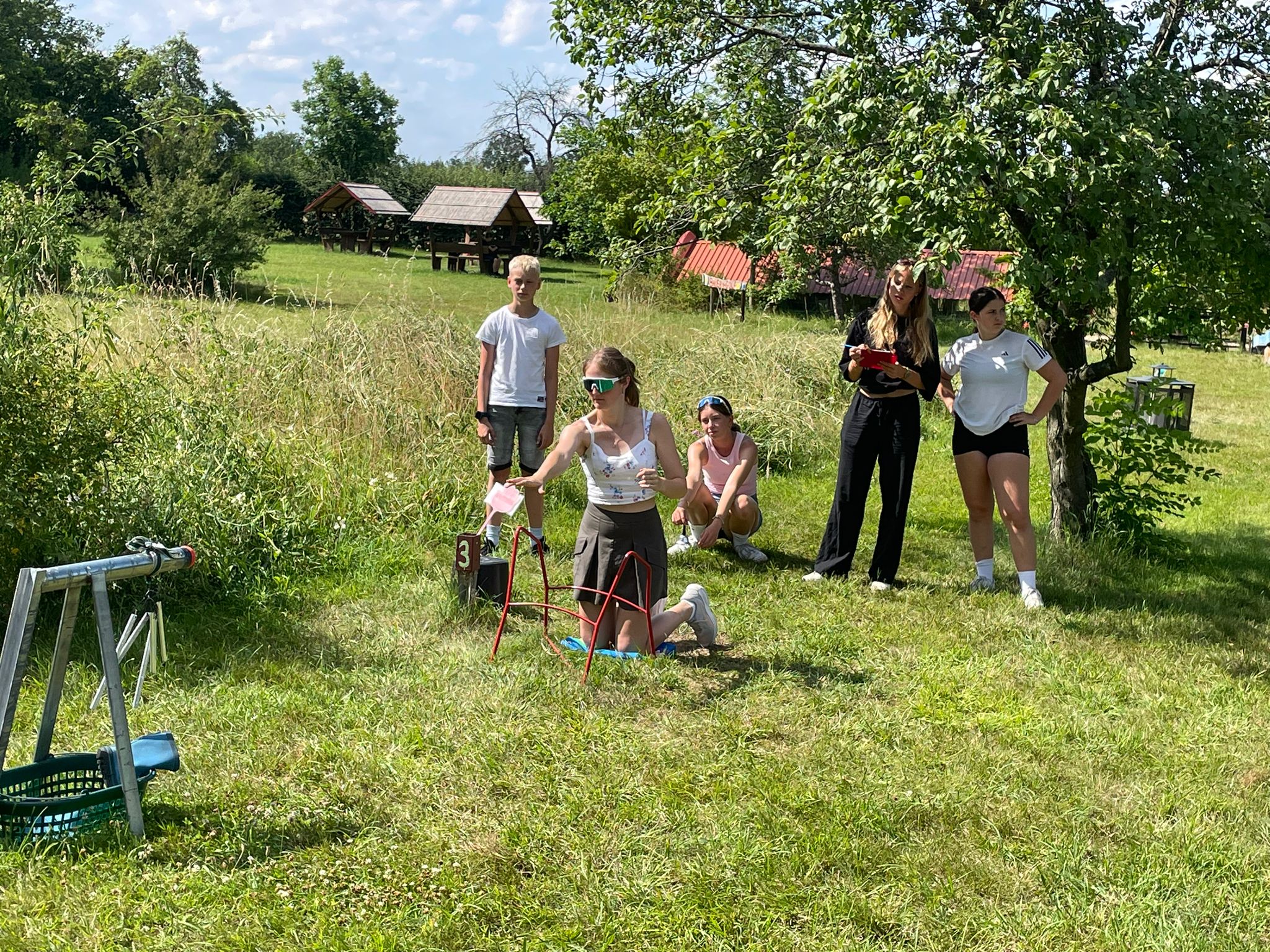 Kurz vorm heimfahren hielten wir noch in der Oberlausitz zum Bauerngolf spielen. Hier mussten Gummistiefel in bestimmte Ziele geworfen werden. Es konnten außerdem Katzen gestreichelt, Fußball gespielt, in der Hängematte ausgeruht oder Tischtennis gespielt werden.