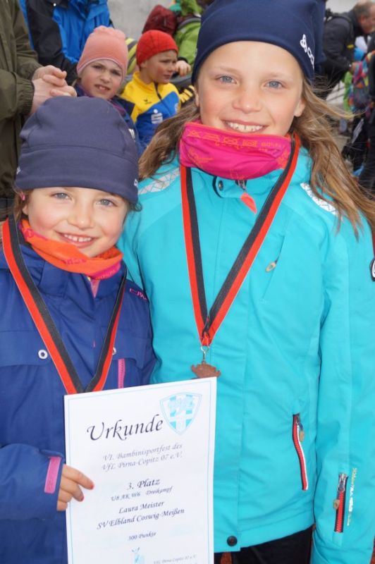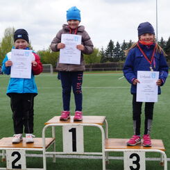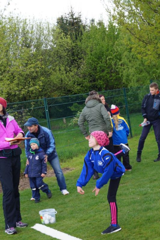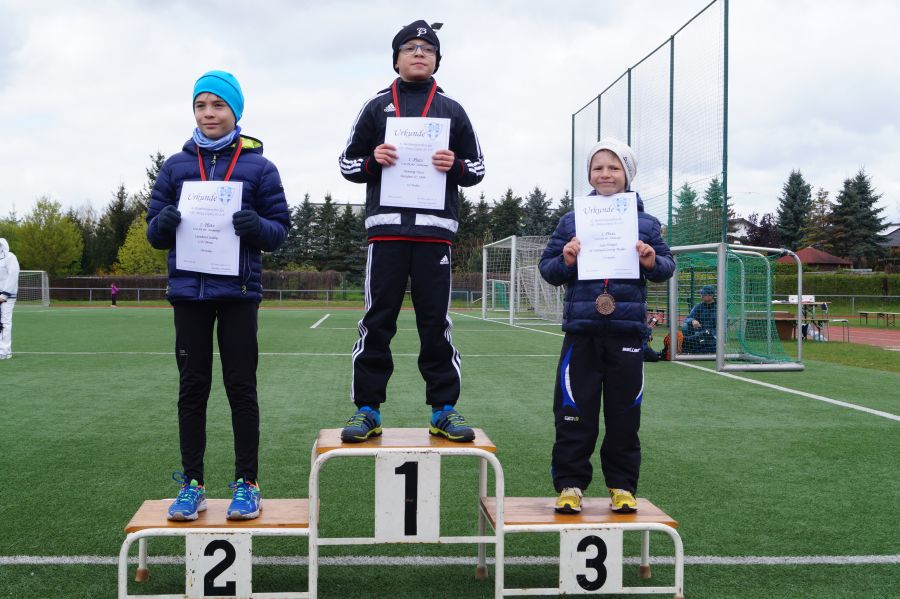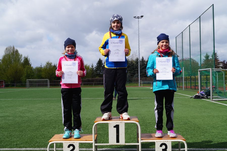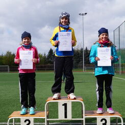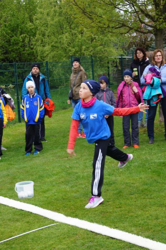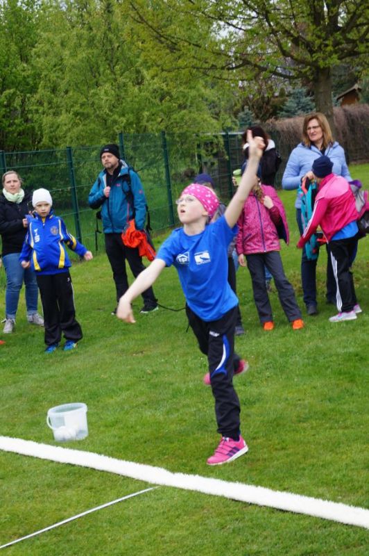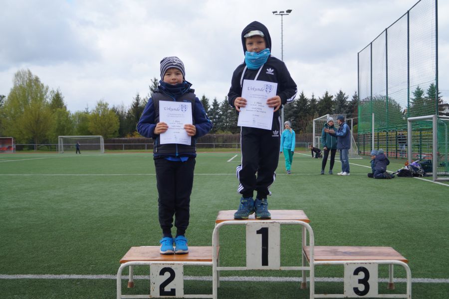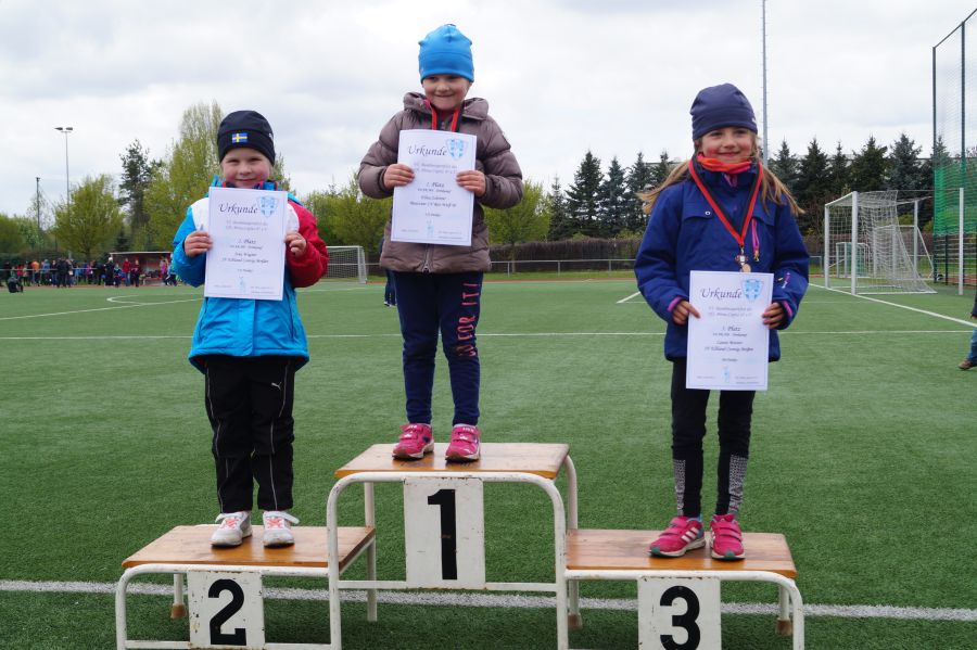 3 kleine Mädchen und 1 Junge des Geburtsjahres 2011 stellten sich der ersten Freiluftherausforderung und absolvierten 50m Sprint, Ballwurf und Weitsprung. Der Lohn war ein 2. Platz für Svea Wagner und Collin Dekan und eine Bronzemedaille für Laura Meister. Dabei konnte sich Svea über 2,01m im Weitsprung freuen und auch der Sprint war super.