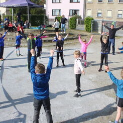Nach einer gemeinsamen Erwärmung und Begrüßung ging es los.