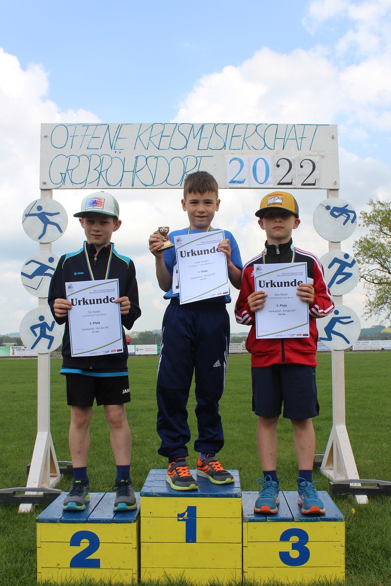 Ballwurf, 30m Sprint, Weitsprung und 400m Lauf standen auf dem Programm. Jede Disziplin wurde erfolgreich gemeistert. Dabei merkten unsere Sportler schnell, wo sie Stärken und Schwächen haben, was leicht war und was doch mehr Kraft kostet als angenommen. Dennoch kämpften sich alle durch, keiner gab auf und einige von ihnen wurden dafür mit einem Podestplatz belohnt. Gerade in dem Alter fällt es schwer, nicht zu gewinnen und so kullerte die ein oder andere Träne. Doch mit weiterem Training werden sicherlich beim nächsten Mal bessere Ergebnisse erzielt und vielleicht reicht es dann für eine Medaille?