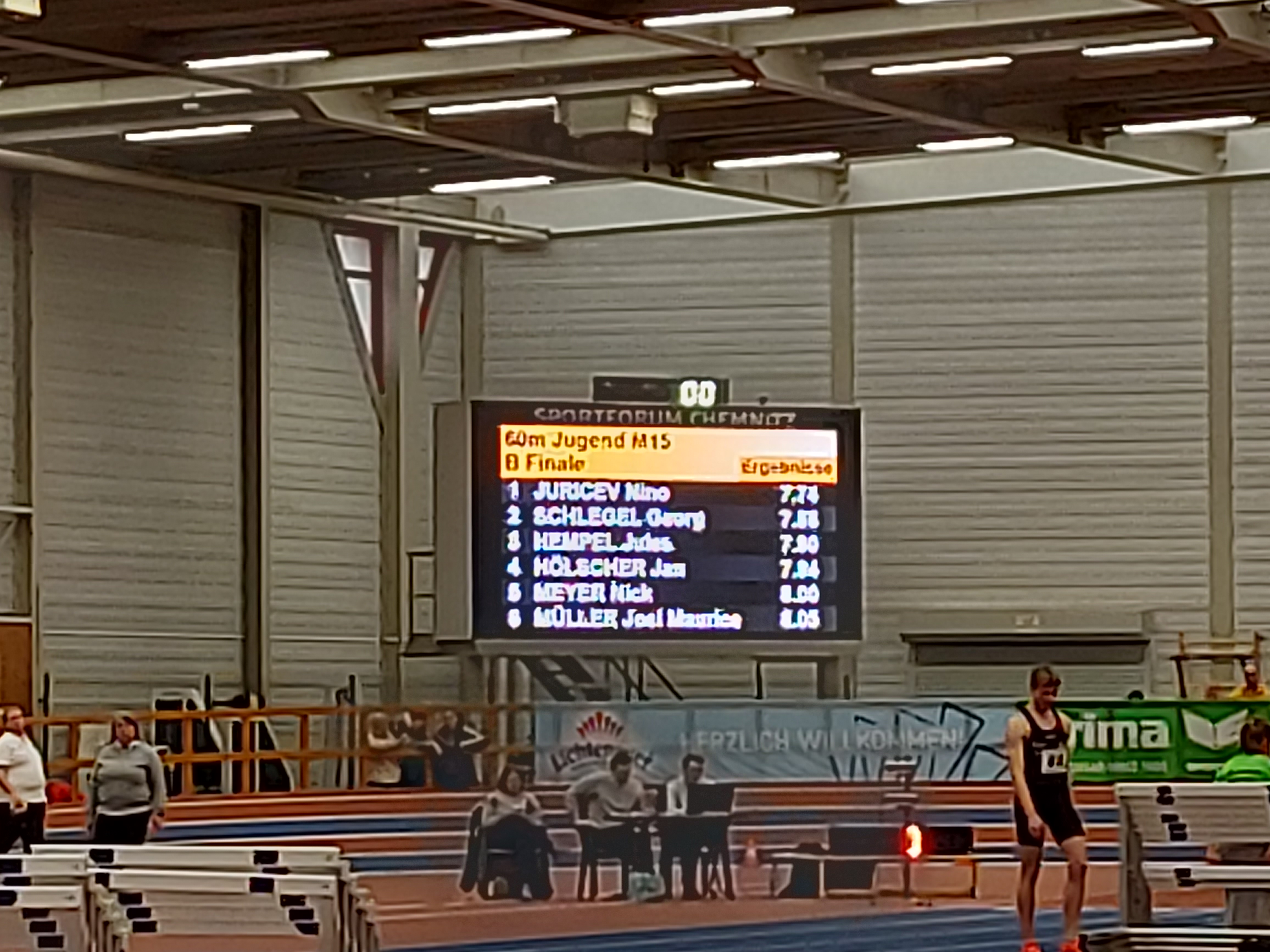 Jules Hempel (M15) startete über 60 m, dabei blieb im Vorlauf die Uhr nach 7,94 sec. stehen und er qualifizierte sich für das B-Finale. Damit lief er erstmals unter 8 sec. Im B-Finallauf kam Jules sehr gut aus dem Startblock heraus und konnte seine persönliche Zeit auf 7,90 sec. verbessern. Anschließend ging es bei ihm ebenfalls mit Weitsprung weiter, hier lief es nicht so Rund für ihn. Er landete am Ende auf Platz sechs mit einer Weite von 5,20 m.