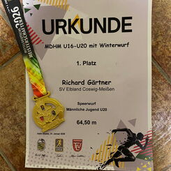 Am 31. Januar 2026 starteten 3 Sportler des SV Elbland bei den Mitteldeutschen Meisterschaften im Winterwurf in Halle Saale, welcher seinem Namen alle Ehre machte. Theresa Kneisel (Hammerwurf U18), Jannis Rentsch (Diskus U18) und Richard Gärtner (Speer U20). Die Sektoren waren noch von einer Schneedecke bedeckt, nur einige Weitenlinien wurde freigeschoben. MLP Die Sportler konnten sich entsprechend in der benachbarten Werferhalle erwärmen. Alle mussten sich sehr warm anziehen, um entsprechend warm zu bleiben, während den Wettkämpfen fungierten die Erwachsenen als Kleiderständer.