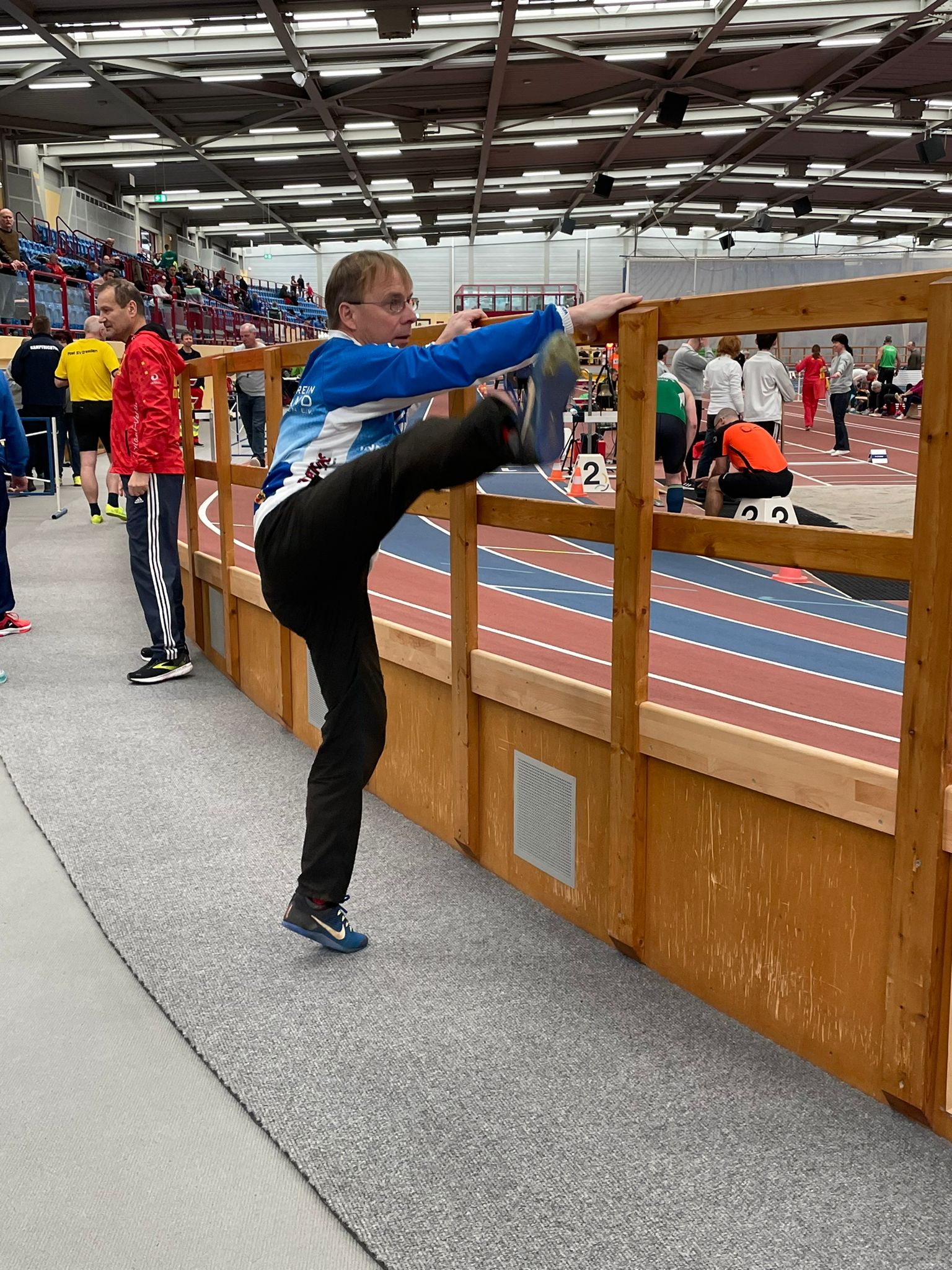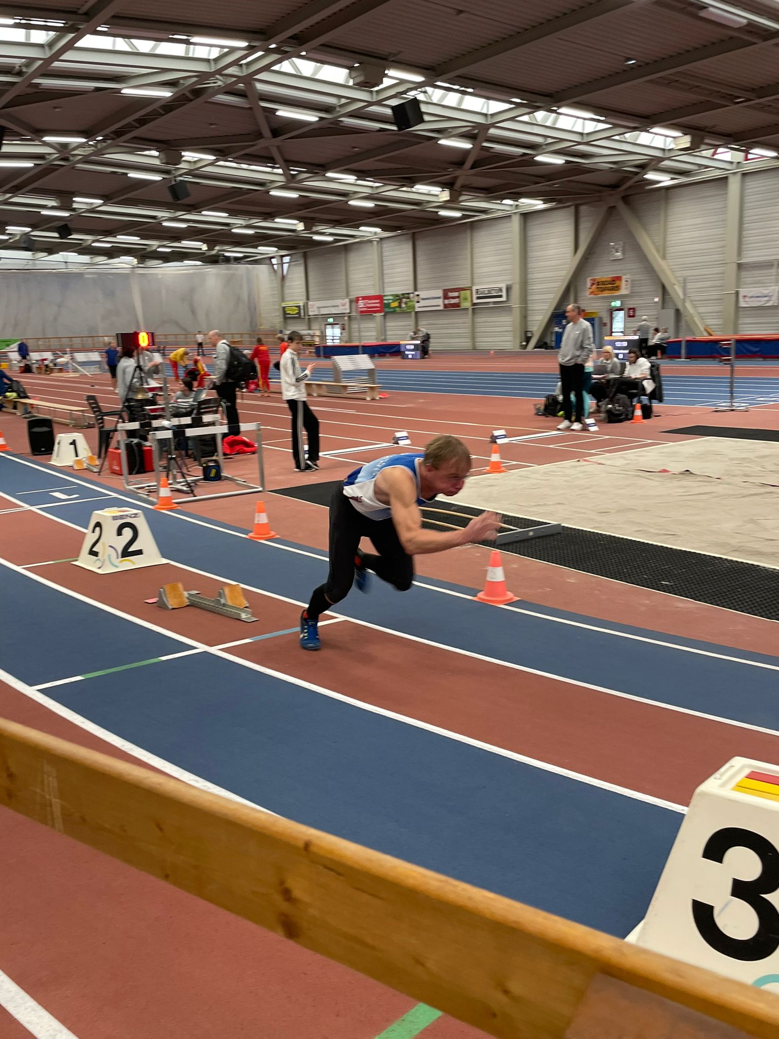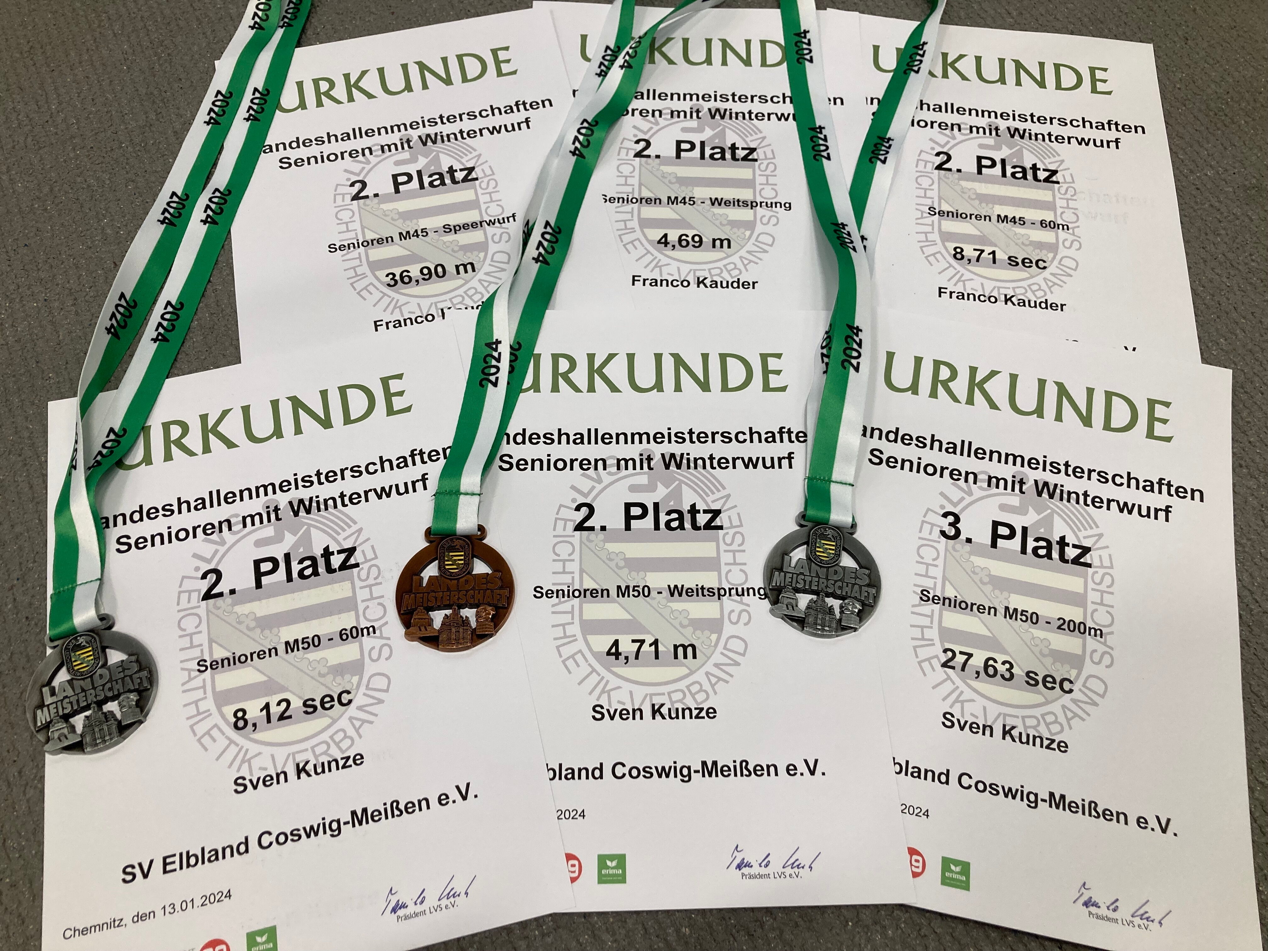 Vom SV Elbland startete bei den Männern in der M45 Franco Kauder. Bei vier Disziplinen errang er 3x Silber. Die Werte im Einzelnen: Weitsprung 4,69 Metern, 60 Meter Sprint 8,71 Sekunden sowie bei eiskaltem Wetter im Stadion 36,90 Meter im Speerwurf.