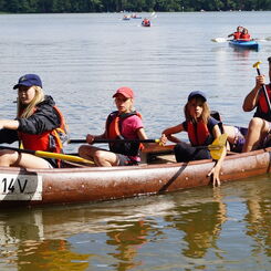 Der 2. Tag startete für uns um7:15 Uhr mit Frühsport, da haben wir Spiele gespielt und sind eine Runde durchs Gelände gelaufen. Dabei fanden einige Trainer und Trainerinnen Pilze. Danach gab es für uns Frühstück. Es war sehr lecker aber danach ging es weiter mit der nächsten Trainingseinheit. Wir haben die Koordination und Kondition trainiert. Anschließend gab es Mittag. Danach hatten wir eine Erholungsphase. Nach 45 Freizeit, freuten sich alle aufs paddeln. Das Wetter war sehr schön und einige konnten sogar ins Wasser gehen. Nach einer (anstrengenden Paddeltour gab es für uns das wohlverdiente Abendessen. Als wir alles gut verdaut hatten, stand eine nächste Trainingseinheit auf dem Programm, mit Wurfübungen. Zum Ende des Tages spielten alle im Gemeinschaftsraum „Werwolf“.