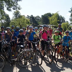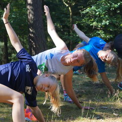 Am Dienstag haben sich alle 7:15 Uhr zum Morgensport getroffen. Wir sind eine Runde gerannt, haben Gymnastik gemacht und Lauf-ABC ebenfalls. Wir mussten Gegenstände in das gegnerische Feld werfen und im Karreè Max und Benni aus dem Weg gehen. Zum Frühstück gab es leckere Donuts und Brötchen. Später ging es mit alten Klapperkisten und komischen Drahteseln auf eine Mountainbike-Tour. Dabei sind wir an einem See vorbei gekommen. Das Wasser war etwas frisch, dennoch haben sich ein paar ins Wasser getraut. Wir bekamen Besuch von 3 Enten. Die Mädchen nannten sie „Paula“, „Pia“ und „Pauline“. Doch die Jungs meinten, das die Enten „Eberhardt“, „Alfred“ und „Günter“ heißen. Dann haben wir uns langsam auf den Weg zu einem Spielplatz gemacht. Von dort aus sind wir zu einer Eisdiele gefahren.Jeder durfte sich 2 Kugeln Eis aussuchen. Nach dem Essen haben wir uns auf den Heimweg gemacht. Wir sind einen Weg mit vielen Wurzeln gefahren. Nach dem Abendessen haben wir noch eine Trainingseinheit gemacht. Wir haben das Diskuswerfen geübt. Am Abend haben viele noch „Werwolf“ gespielt.