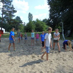 Aufstehen: 7:30Uhr. Danach packten wir unsere restlichen Sachen in die Koffer. Kurz vor dem Frühstück fiel der Ketchup auf den Boden. 8 Uhr gingen wir zum Frühstück, es gab wie immer Müsli und Brötchen. Bevor wir zum Training gingen packten wir die Koffer in die Autos. Im Training haben wir Fußball, Streetball und Volleyball gespielt. Kraft haben wir auf der Treppe und im Sand trainiert. Am Strand haben wir mit Schwämmen ein Spiel gespielt. Zum Mittag gab es Jägerschnitzel und Nudeln. Danach ging es auf den Heimweg. Unterwegs haben wir noch einen Zwischenstopp in Ökotanien gemacht. Wir spielten das Chaosspiel. Das Chaosspiel ist ein Spiel mit Karten und Fragen.