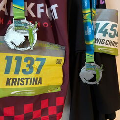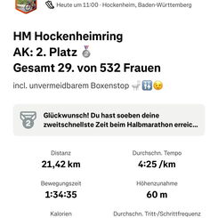 Ihre Laufzeit: 1:35:05 (Rang 2 in der AK50)