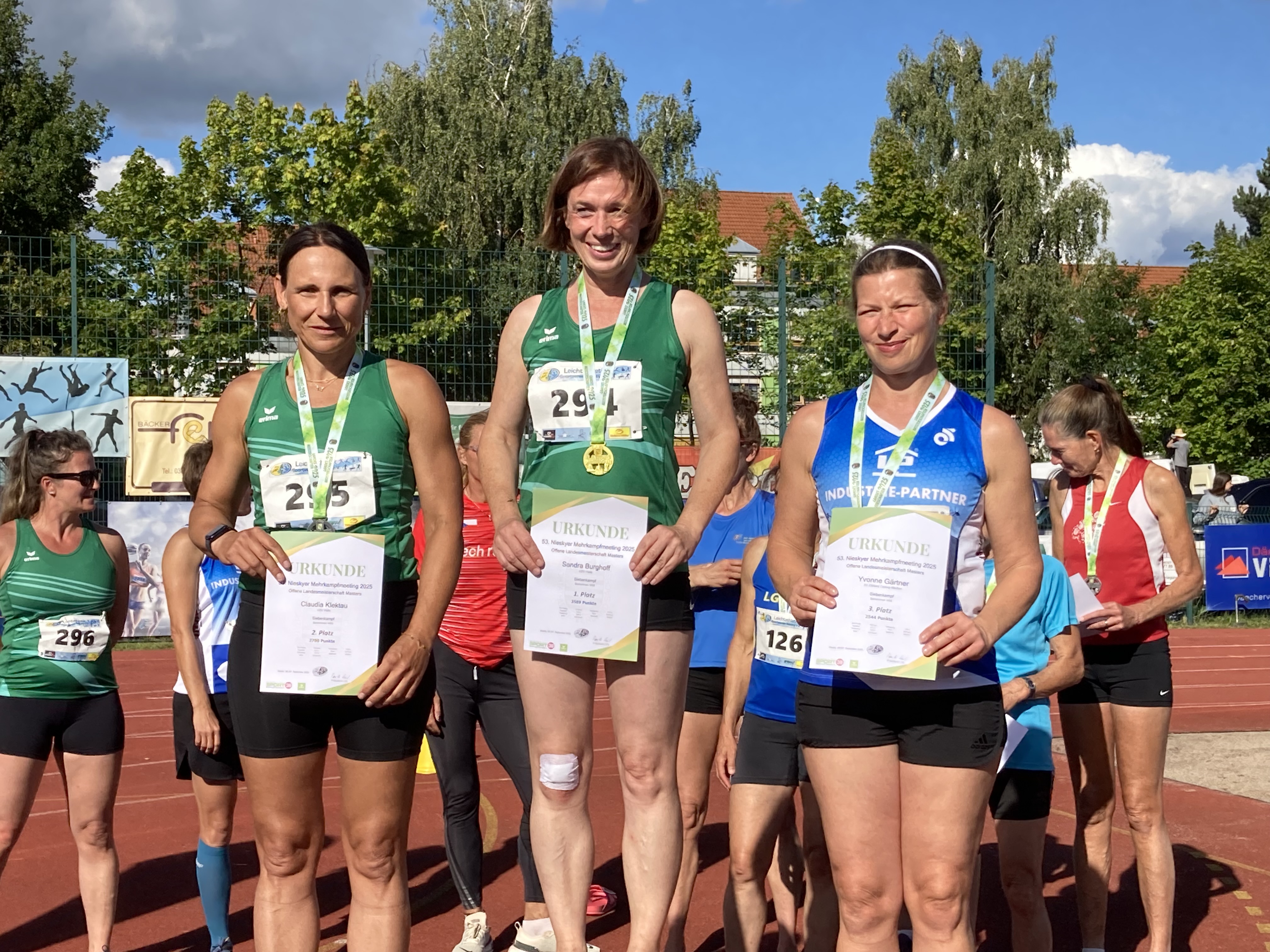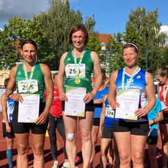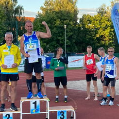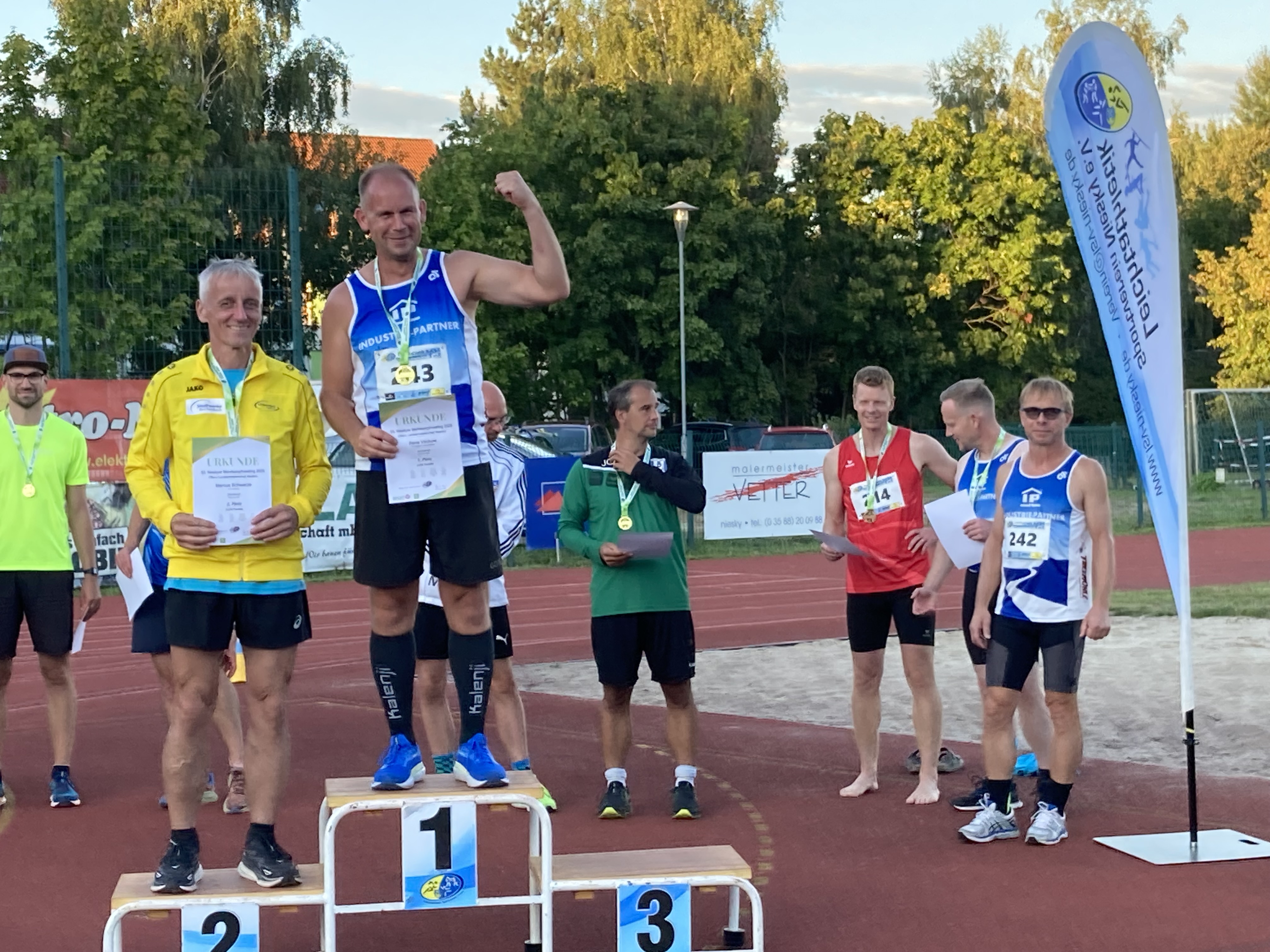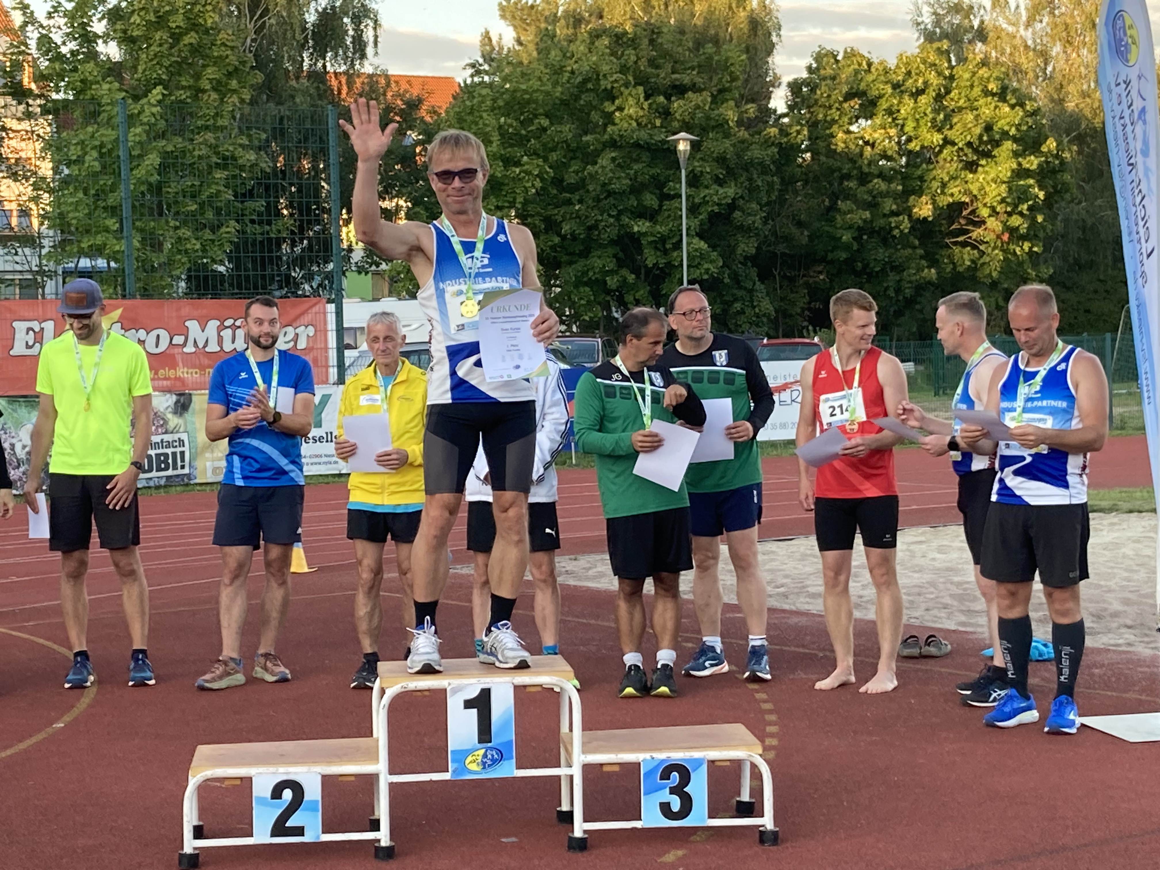 Zum Abschluss der Masters stiegen Rene Virchow(M50) und Sven Kunze(M55) ganz nach oben und ließen sich als Landesmeister im Zehnkampf feiern. Dabei zeigten die beiden einmal mehr, dass Alter keine Rolle spielt und auch mit 50+ noch Bestleistungen möglich sind.