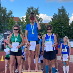 Allgemein konnten die Elbländer oft einen Fuß auf das Treppchen setzen. So ergatterten Mildred Knebel(W45) und Yvonne Gärtner(W50) einen Platz auf dem Podium. Mildred, die eigentlich passionierte Läuferin ist, stellte sich erstmal den anspruchsvollen Disziplinen des Zehnkampfes und wurde für ihren Mut belohnt.