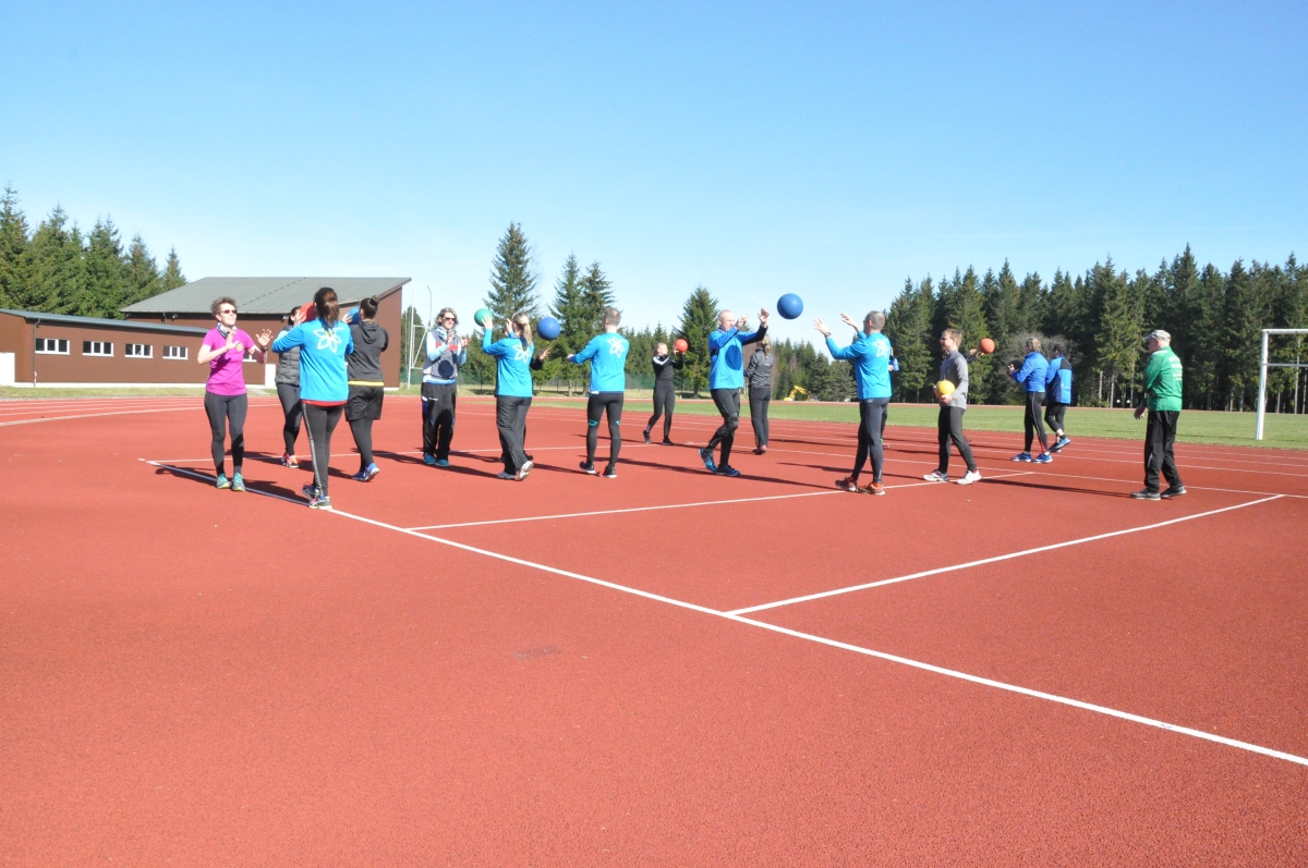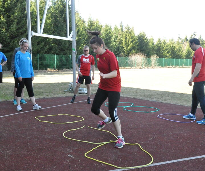 Donnertag den 30.3.2017 ging es los. Pünklich 10 Uhr sammelten sich alle in der Sporthalle und absolvierten ihre Erste der 19 Trainingseinheiten. Das Wetter meinte es dieses Jahr so gut mit uns, dass fast alle weiteren Einheiten an der frischen Luft stattfinden konnten. Somit konnten wir das Sportabzeichen bei Sonnenschein und bester Laune nach dem Mittag in Angriff nehmen. Standweitsprung, Schleuderball und Kugelstoßen standen als erstes auf dem Programm. Anschließend traten wir den Weg in die Schwimmhalle an und absolvierten die 400m bzw. 800m. Kurzstreckenschwimmen, Tieftauchen, Streckentauchen und 2 Sprünge später hieß es dann: Deutsches Schwimmabzeichen in Silber geschafft. Nach dem Abendessen stand für der ersten Tag noch Fitnessstudio und Sauna auf dem Plan.