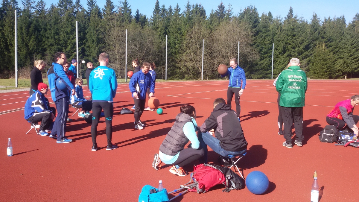 Neben Sporteinheiten wie Sprungkraftausdauer, Diskuswurf, Hürdentechnik und allgemeinem Zirkeltraining standen auch die Abnahme des Deutschen Sportabzeichen und des Schwimmabzeichens mit auf dem Plan.
