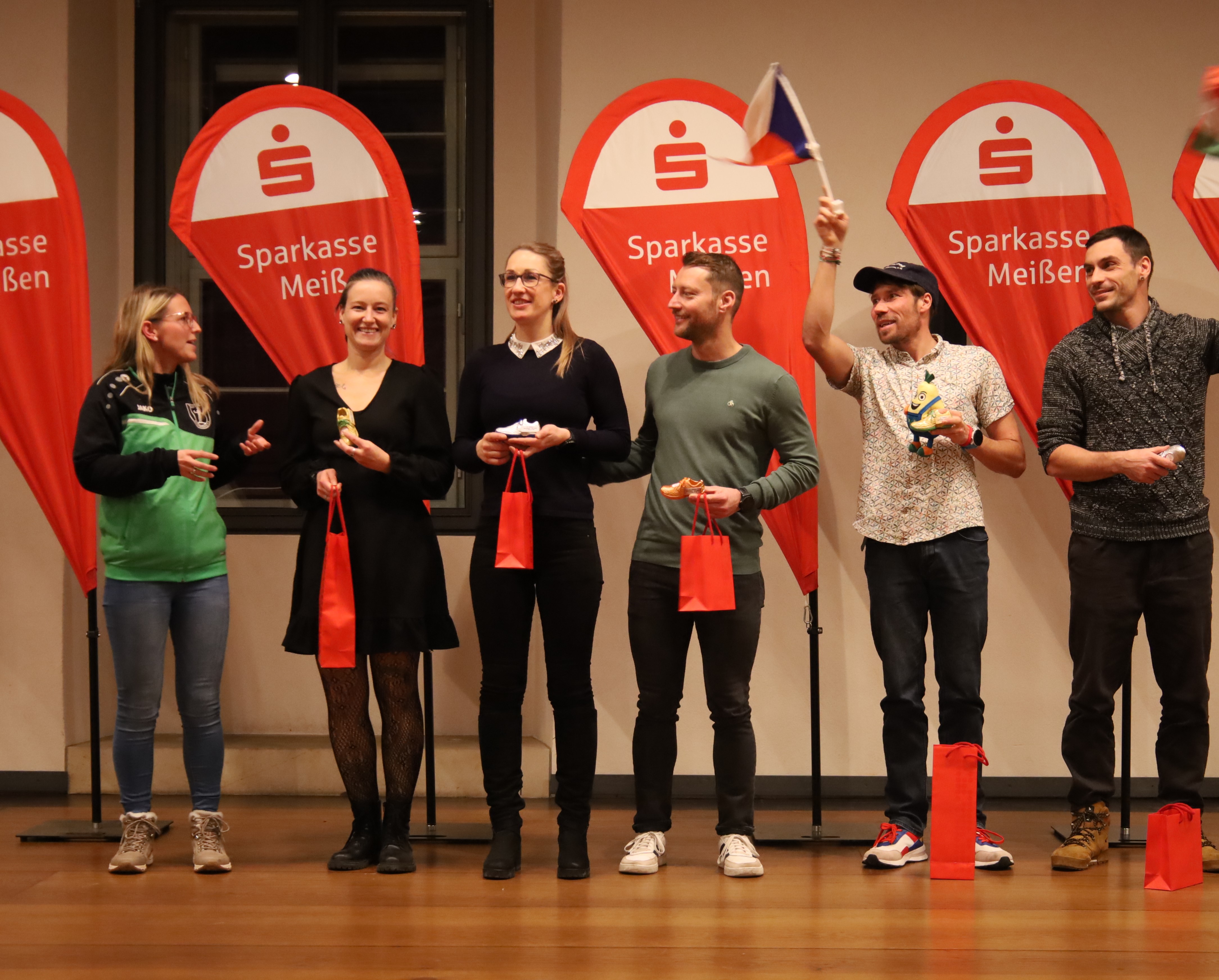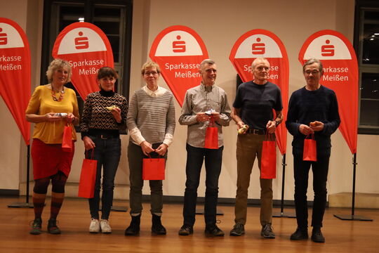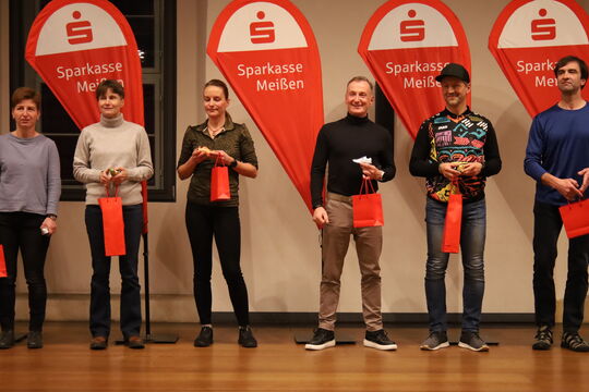 Eingeladen waren die jeweils ersten drei Läufer und Läuferinnen von insgesamt 35 Altersklassen. Ebenso die Läufer, die an allen 16 Wertungsläufen teilgenommen hatten und auch die Hauptorganisatoren der Veranstaltungen. Die Ehrungen nahmen Frau Kußai und Steffen Richter von der Sparkasse Meißen, Dietmar Heinrich und Paul Werner vom KSB Meißen sowie Jürgen Winter vom TuS Weinböhla vor.