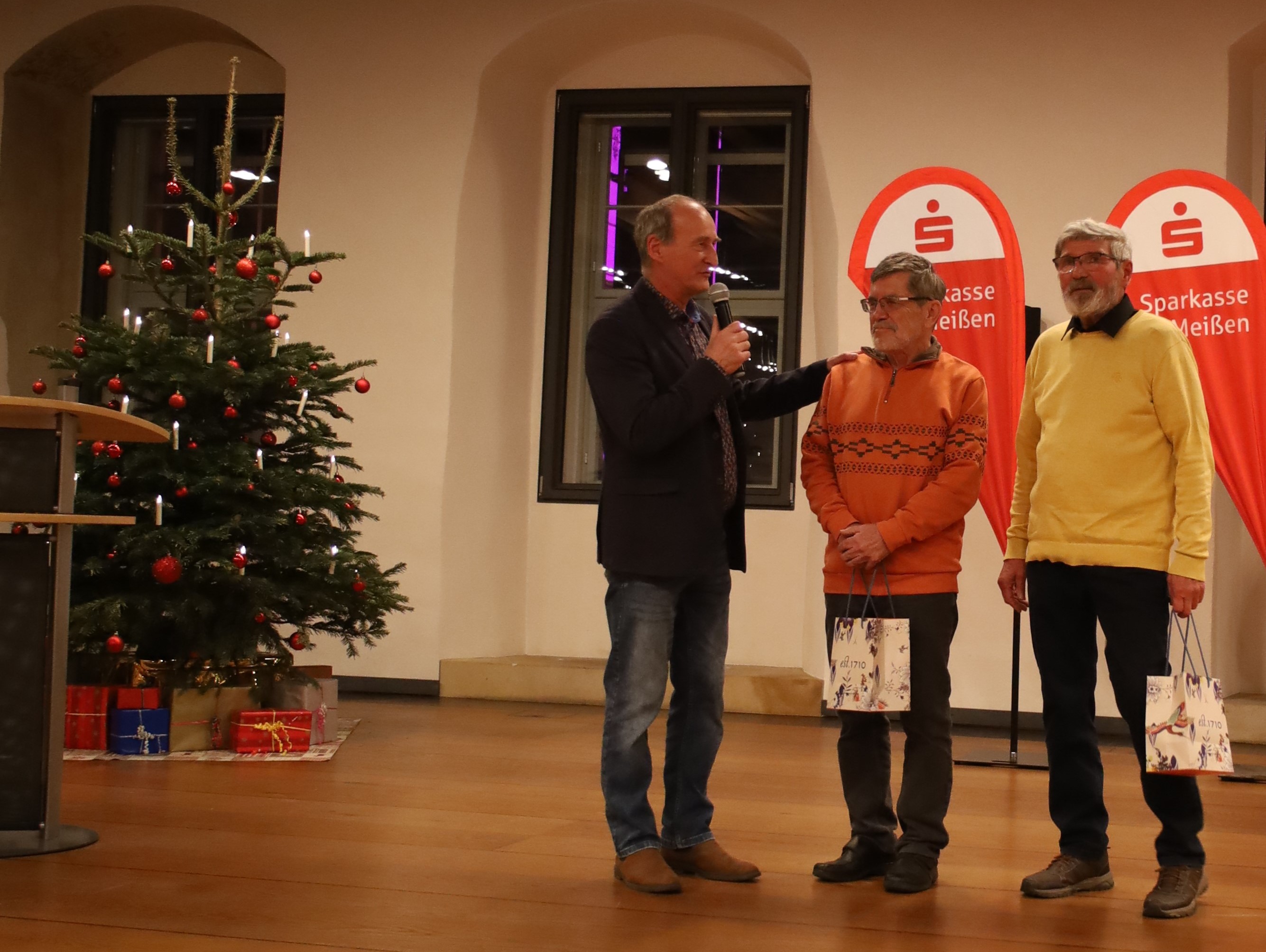 Ein besonderes Dankeschön von der Sparkasse Meißen erhielten die beiden Hauptorganisatoren der Laufserie, Jürgen Winter und Dietmar Heinrich.