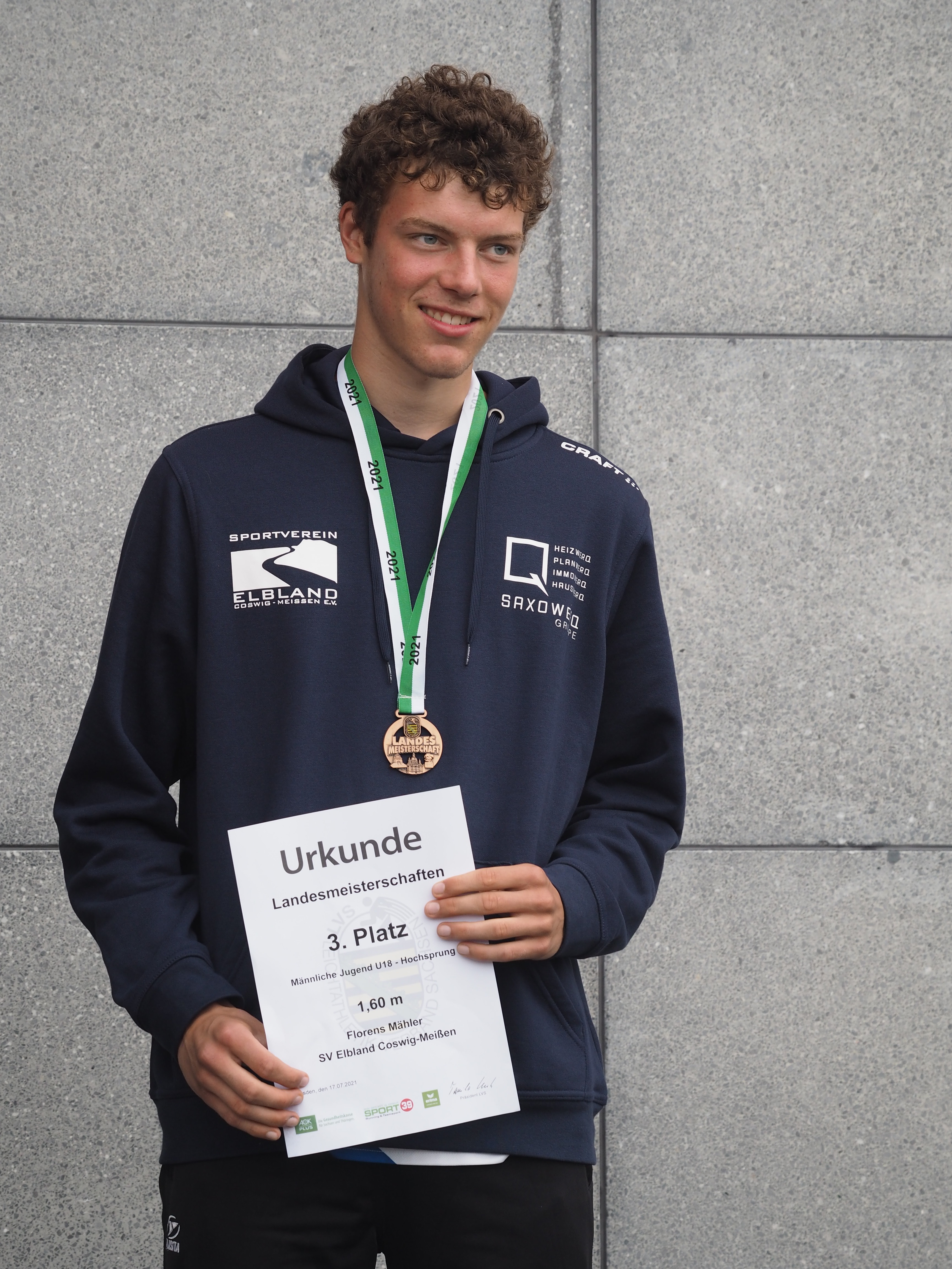 Florens begann seinen Wettkampftag mit dem Hochsprung, hier überquerte er 1,60 m und durfte sich ebenfalls eine Bronze Medaille abholen. Mit 39,57 m holte sich Florens im Speerwurf den fünften Rang.