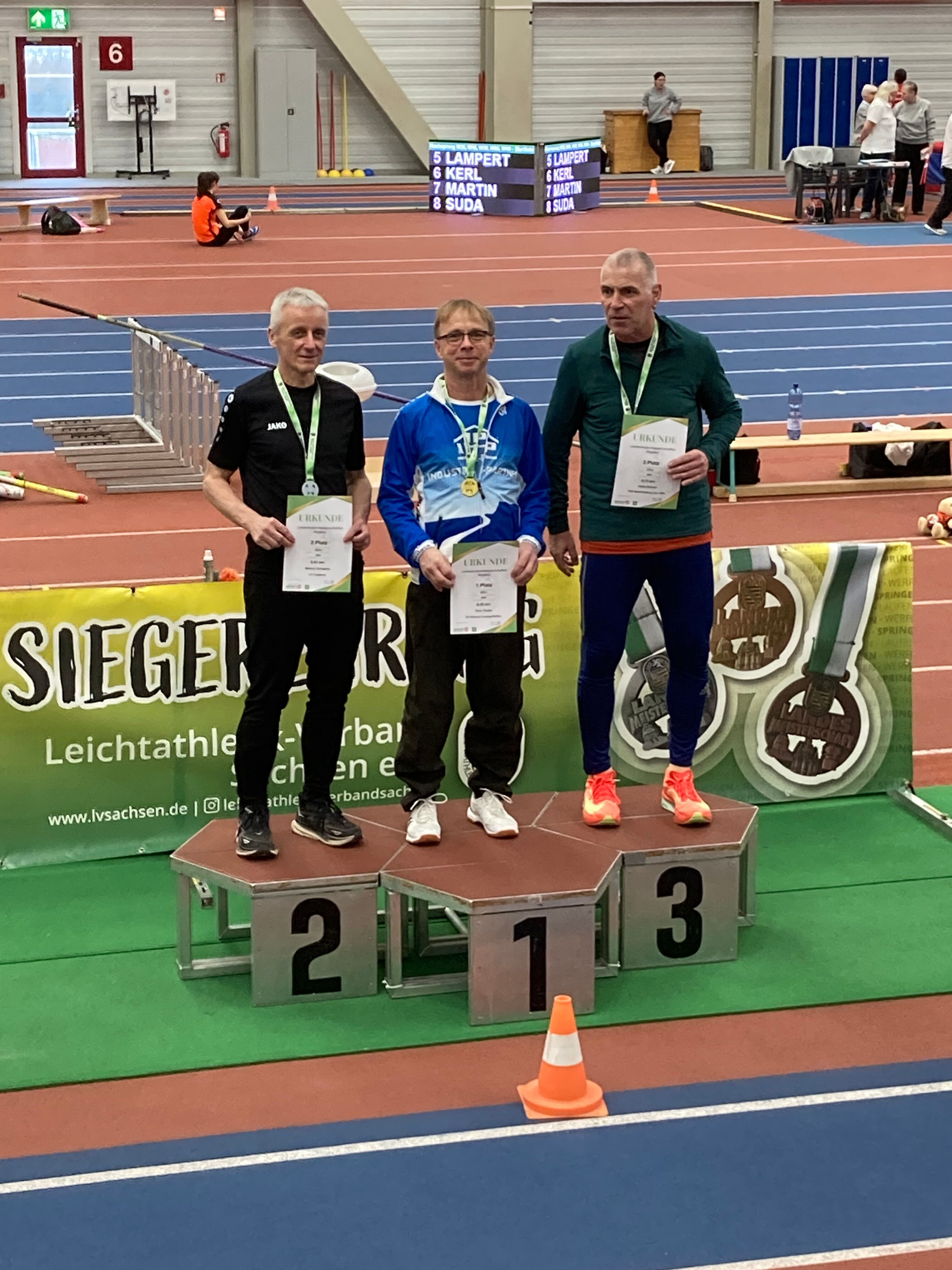 Dafür musste er schmerzgeplagt beim Weitsprung Abstriche machen und sich mit 4,24m zufriedengeben. Augenscheinlich problemlos spulte Tom Seifert in der M50 souverän seine Leistungen ab und gewann sicher den Weitsprung mit 5,21m. Direkt danach lief er die 200m in 27,19s und wurde damit Zweiter aufgrund der Zeitläufe. Als Einziger traute er sich über die 60m Hürden und lief diese in 10,45s.