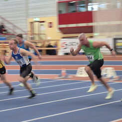In der M55 sprintete unser Kuni zu Gold über die 60m in einer respektablen Zeit von 8,45s.
