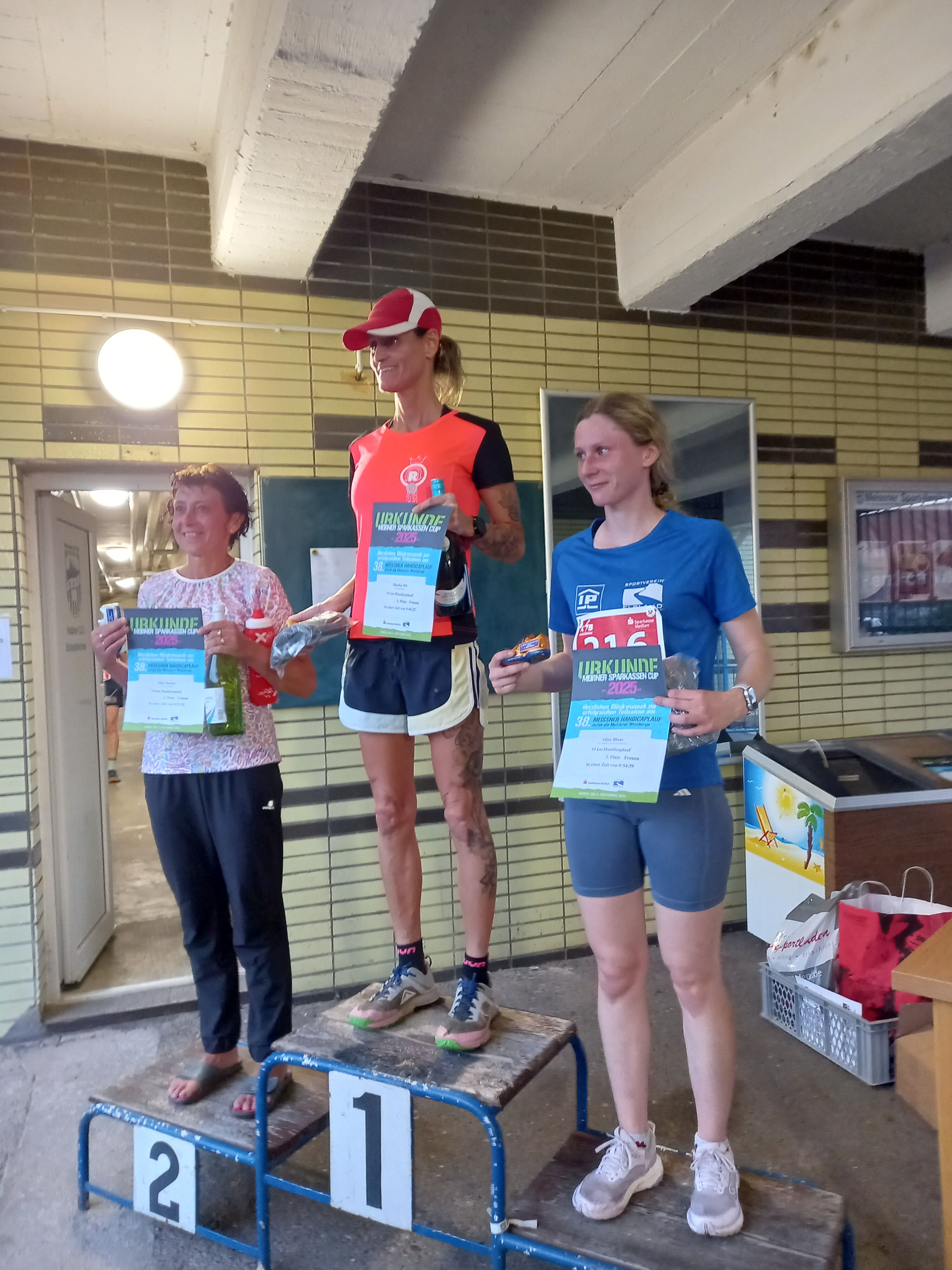 Die Läufer und Läuferinnen über 10 km kämpften um die Platzierungen in der Handicapwertung. Zeitschnellster über diese Strecke wurde unser Triathlet Robin Duha.