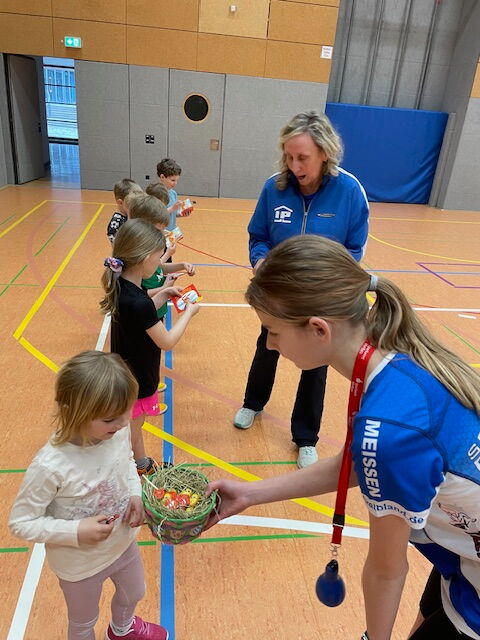 Das Training findet immer freitags am Gymnasium statt. Diese Woche war bereits das dritte Mal und die Übungsleiter haben es genutzt, um die Osterzeit einzuläuten.