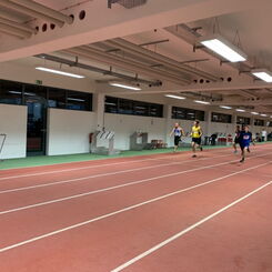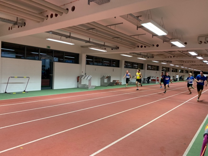 Aufgrund technischer Schwierigkeiten verzögerte sich leider der Start für die 150m. Die Sportler waren damit beschäftigt warm zu bleiben, um fit zu sein für die Rundbahn mit dem erhöhten Kurvenabschnitt. Sven absolvierte den Lauf souverän in einer Zeit von 20,11s. Rita kam nach 23,18s ins Ziel. Gegen 20:30 Uhr trat abschließend Franco noch bei den 300m an in einer respektablen Zeit von 47,61s.