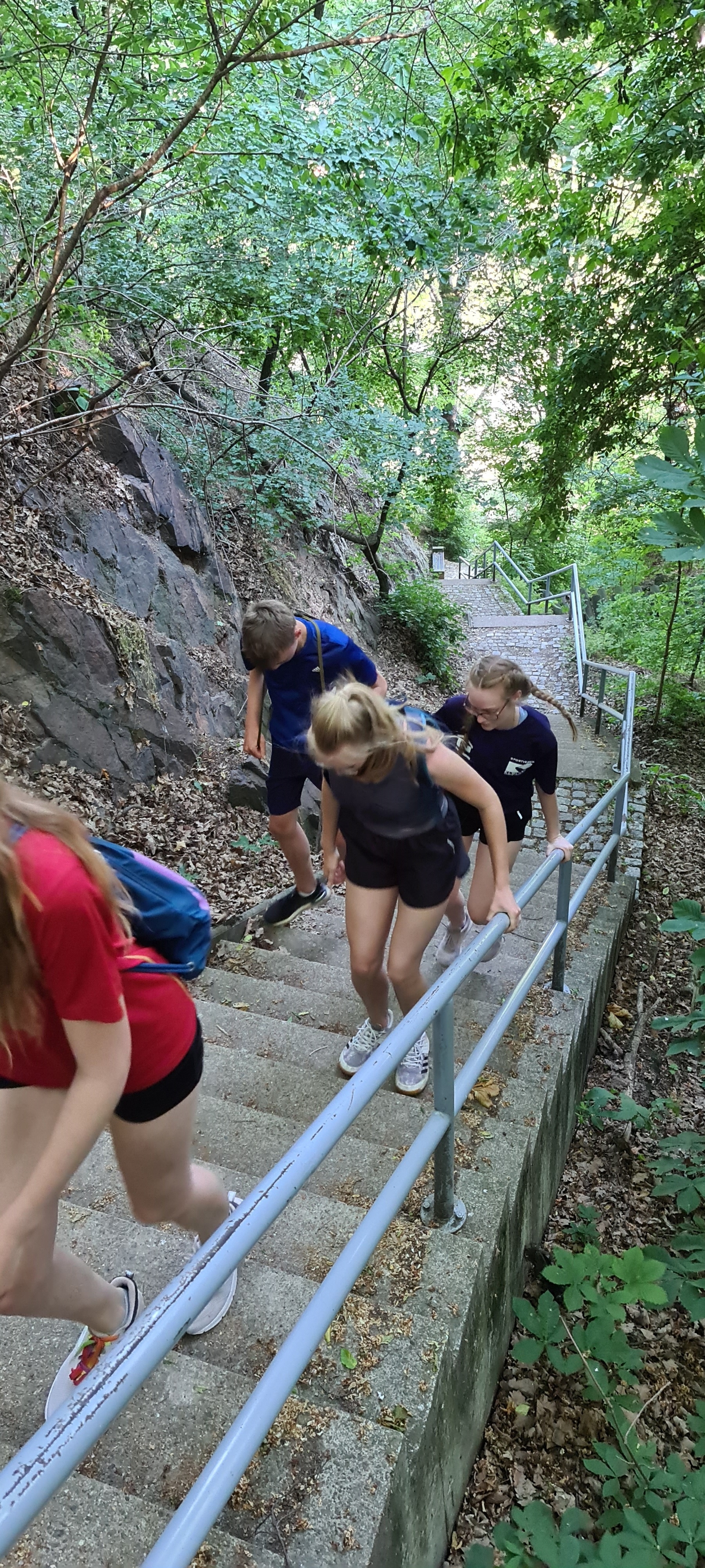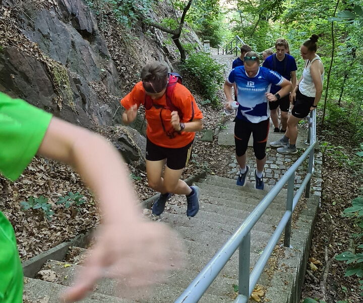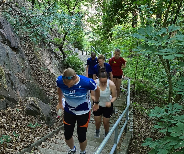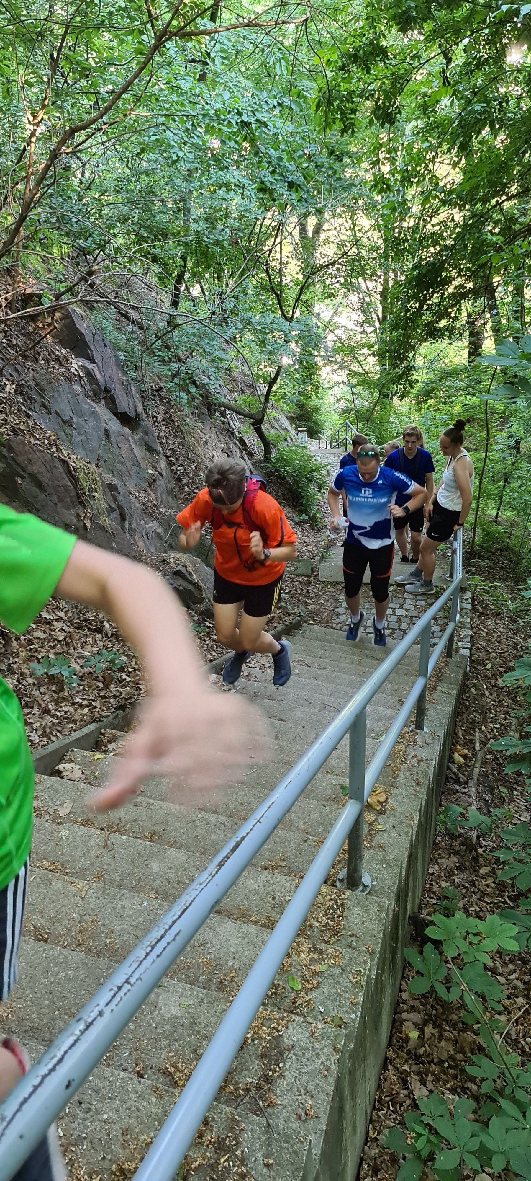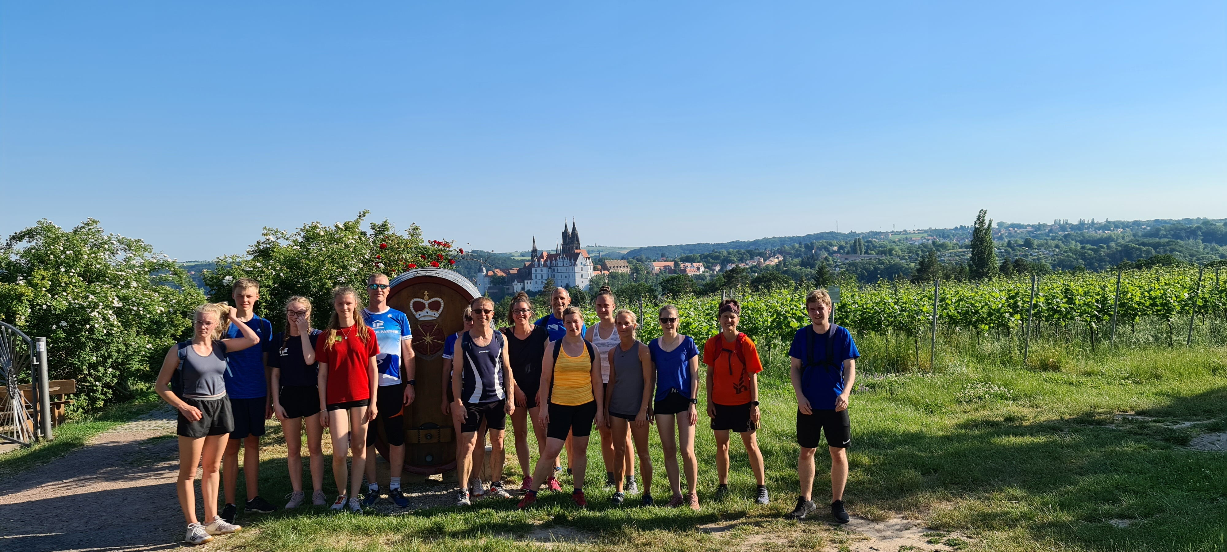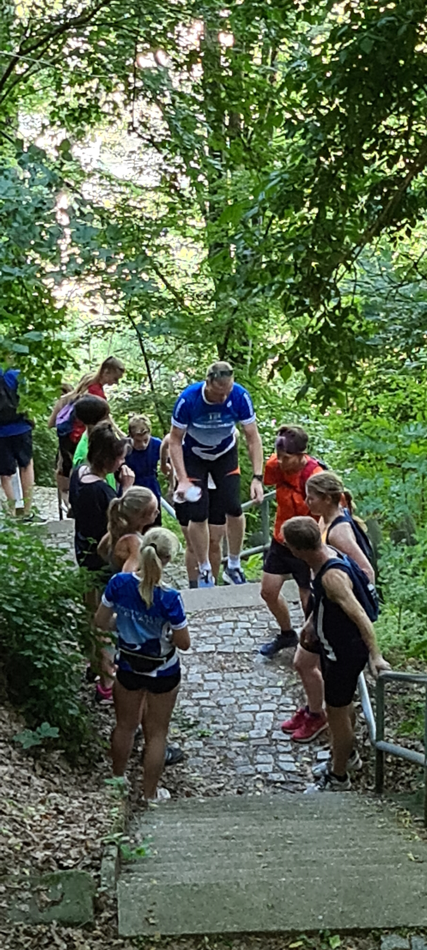 Mit unerwarteten 16 Sportlern ging es im lockeren Dauerlauf durch die Weinberge des Proschwitzer Katzensprung‘s. Nachdem im Schatten unterhalb der Katzenstufen die Gymnastik durchgeführt wurde, ging es über die 200 Stufen 2 Mal mit verschiedenen Übungen. Für einige eine schon anstrengende Sache. Oben angekommen liefen wir langsam über die „Schönste Weinsicht Sachsens 2016“ in den kühlen Heiligen Grund. Nachdem dort noch am Teich einige Übungen gesportelt wurden, sind alle unverletzt ins Stadion gegangen.