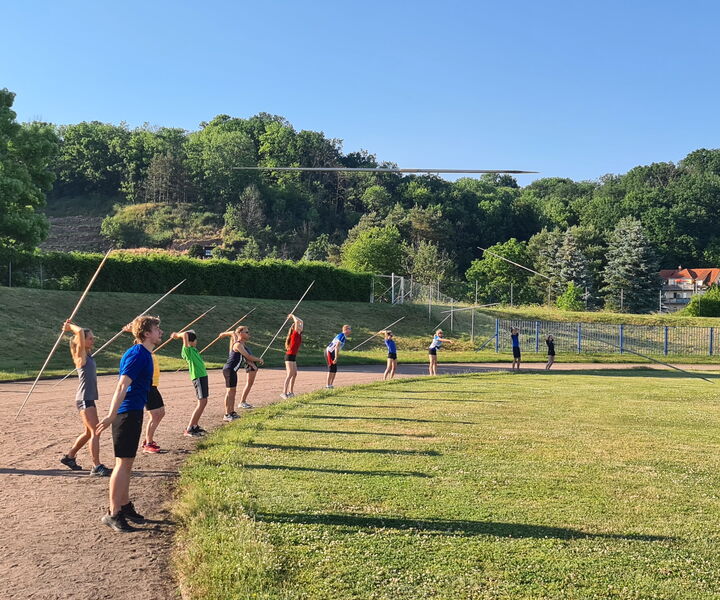 Zum Abschluss wurde noch eine halbe Stunde die Technik des Speerwerfens trainiert.