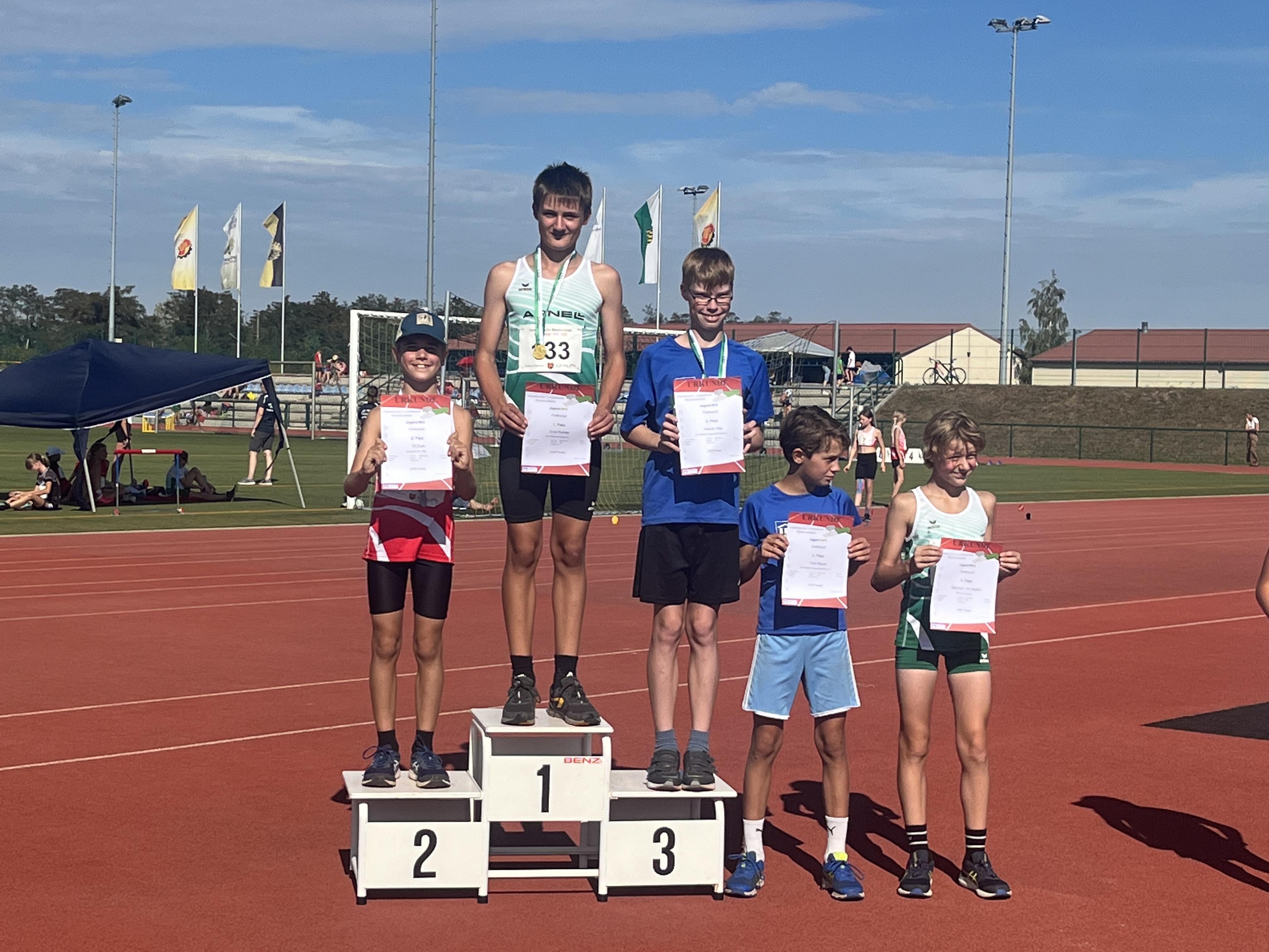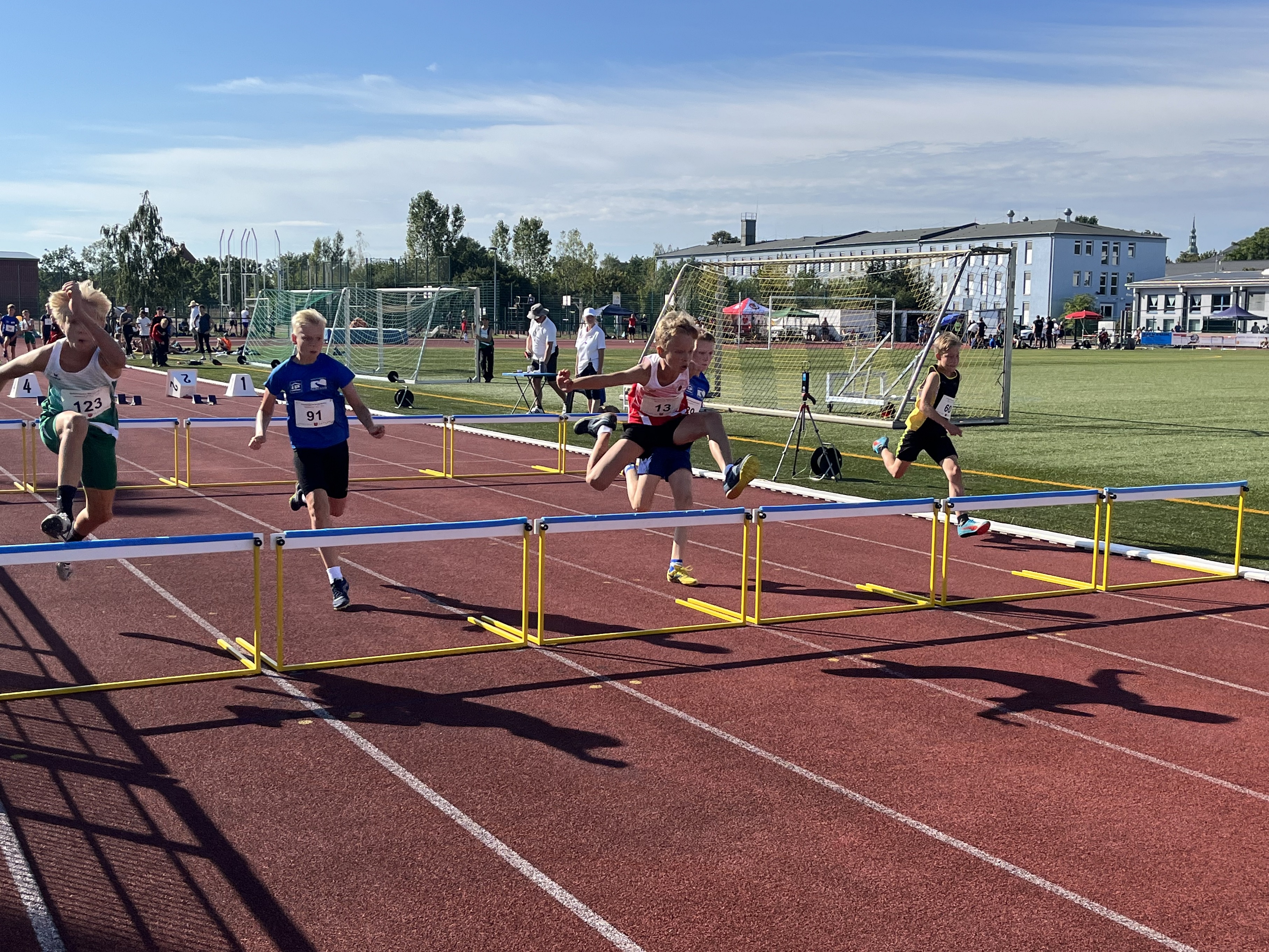 Paula Richter (w11) konnte bei sommerlichen Temperaturen über die 60 m Hürden mit 12,00 sec. eine neue Bestzeit aufstellen. Am Ende der fünf Disziplinen hatte sie 1.768 Punkte auf ihrem Konto, was Platz neun bedeutete. Der jüngste Starter war Nick Nitzsche (m10), er wurde mit einer Punktzahl von 1.550 achter.