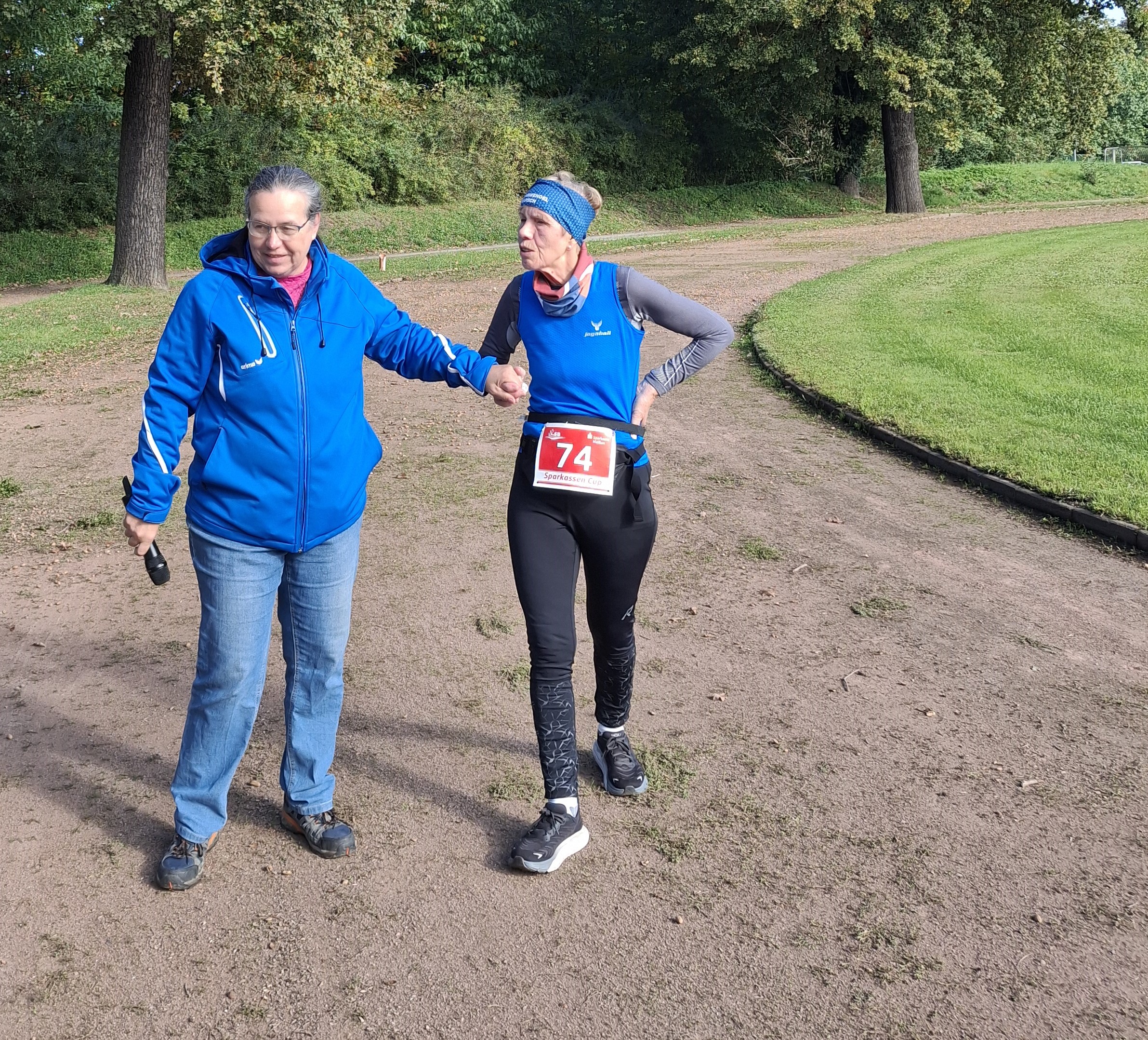 Es waren auch zwei Nordic Walker unterwegs. Einer davon war unser Altmeister und mehrmaliger Weltmeister, Armin Zosel. 7 Läuferinnen und Läufer unseres Vereines hatten sich in die Startlisten eingetragen. Über die 2,1 km stand, im Starterfeld von 28 Teilnehmern, unser Vereinsmitglied, Katharina Wirker. Sie kam als Sechste ins Ziel und belegte in ihrer Altersklasse Platz 3. Auf der 5,7 km Strecke vertraten Leni Strebe und Elvira Lindner unseren Verein. Leni war im Feld von 46 Teilnehmern 14. und in ihrer Altersklasse Zweite. Ebenfalls Zweite in ihrer Altersklasse wurde Elvira.