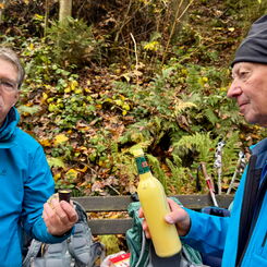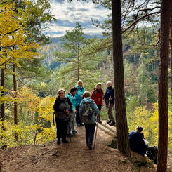 Dort im Gasthaus „Zur Eiche“ speisten wir zu Mittag. Mit dem Bus ging es nach Bad Schandau, um dann mit der S-Bahn wieder nach Coswig zu fahren. Der Wettergott war uns hold, so dass wir eine herrliche Herbstwanderung ohne Regen erlebten.