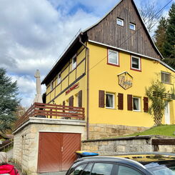 Wir lassen den Wolfsberg links liegen und steigen nach Reinhardtsdorf hinab. Die Bauernbarockkirche lohnt ein kurzes Verweilen. Auf dem Krippenbergweg werden wir unten im Tal vom Krippenbach begleitet. Auf dem Püschelweg erreichen wir nach kurzer Zeit wieder Krippen.