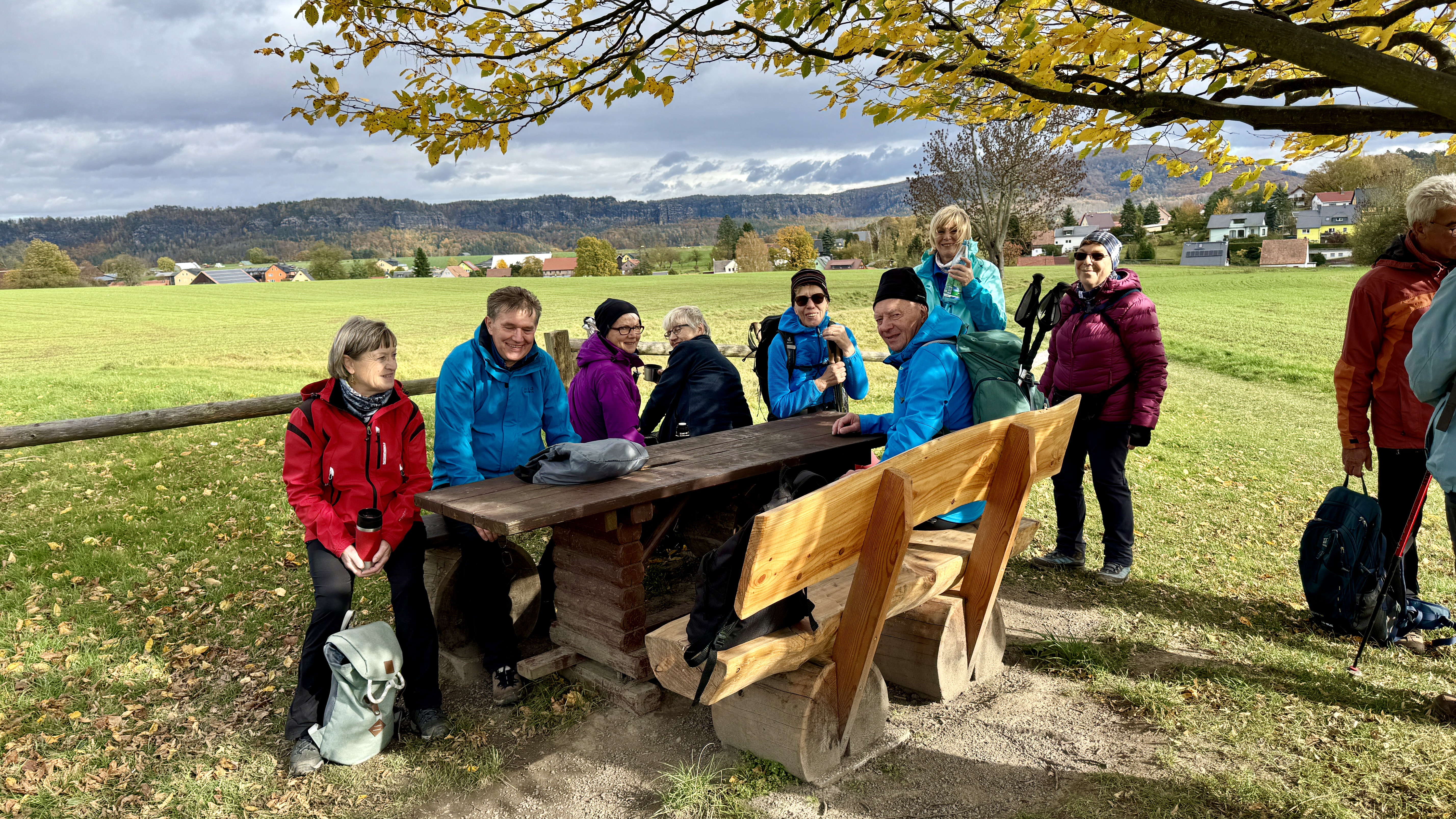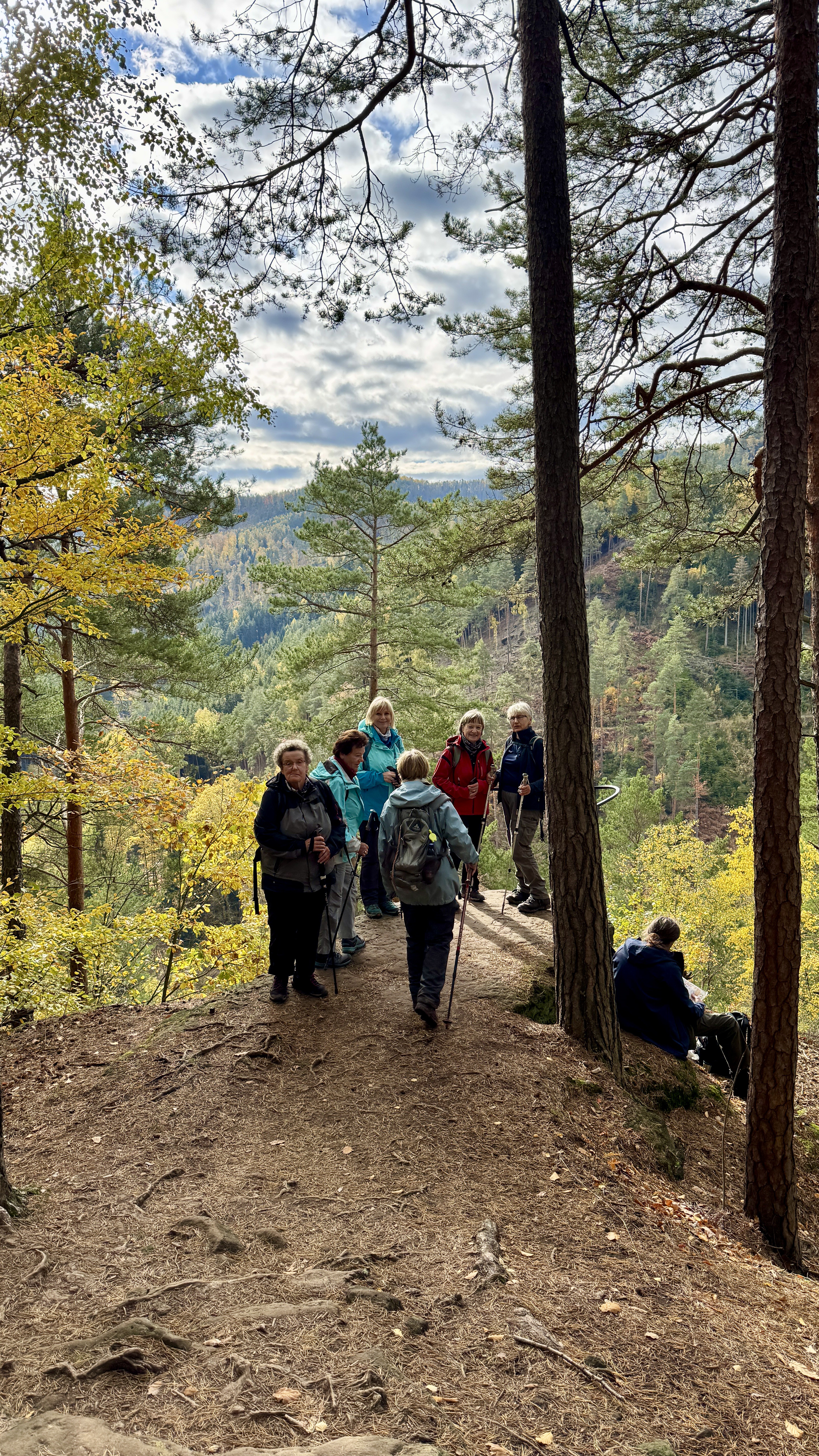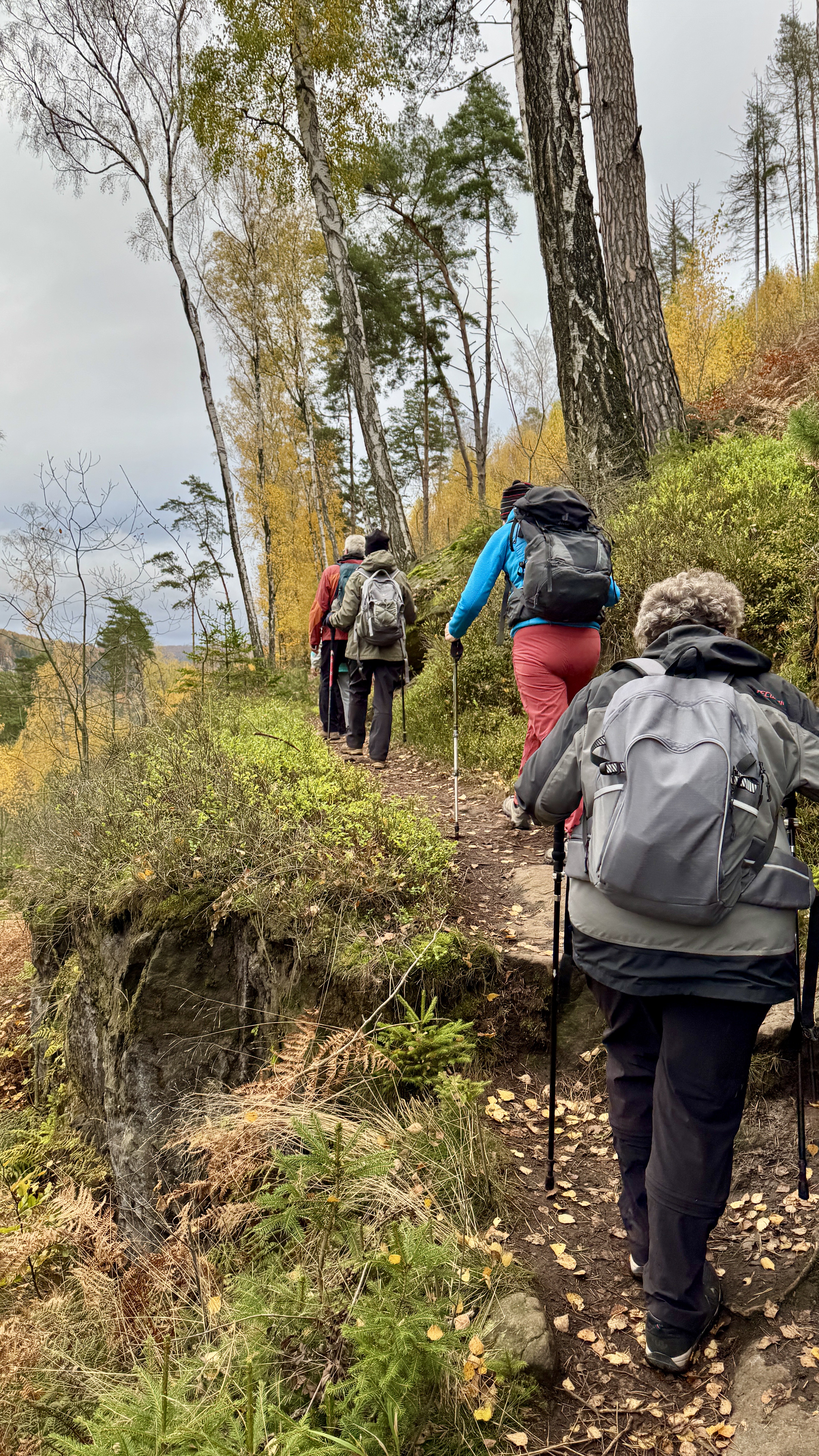 Am 25.10.2025, 7.15 Uhr trafen wir uns in Coswig am Bahnhof. Es hatten sich 15 unentwegte Wanderer getroffen. Mit der Regionalbahn ging es nach Krippen in der Sächsischen Schweiz. Dort gelangten wir am Bahnhof gegen 9.00 Uhr an.