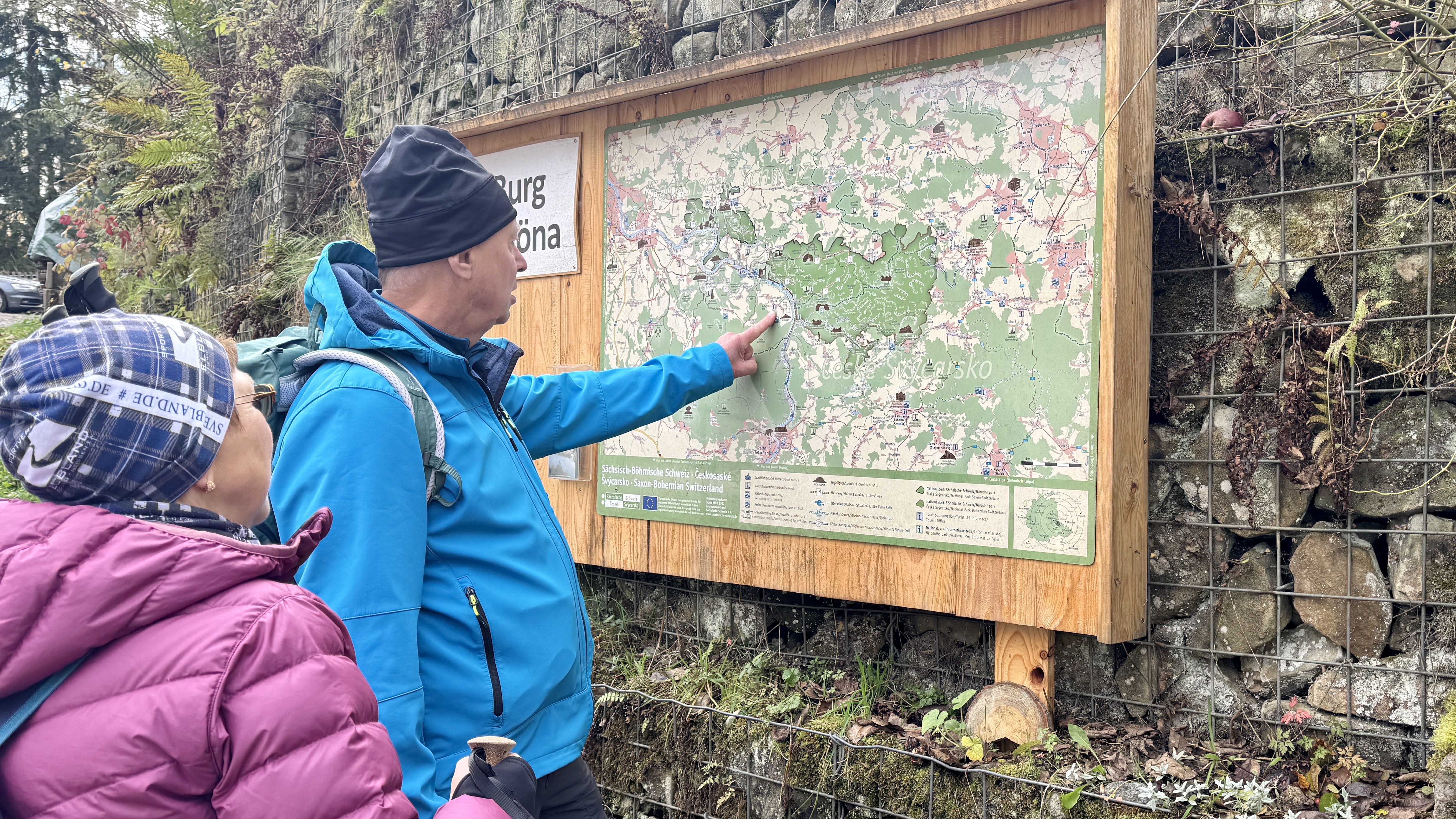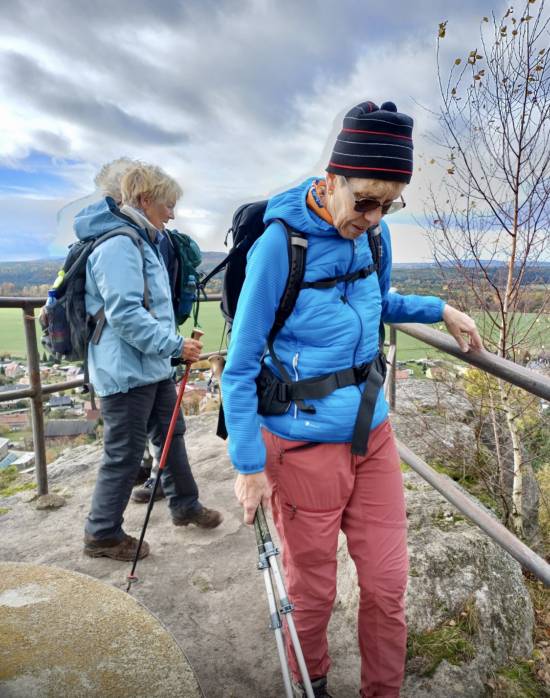 Über den Aschersteig kommen wir nach Reinhardtsdorf-Schöna. Von dort erklommen wir die Kaiserkrone. Ein grandioser Blick auf das Elbtal und einen Teil der Sächsischen und Böhmischen Schweiz überraschte uns. Dann ging es weiter auf dem Grundweg rund um Reinhardtsdorf-Schöna.