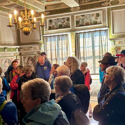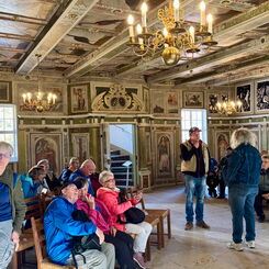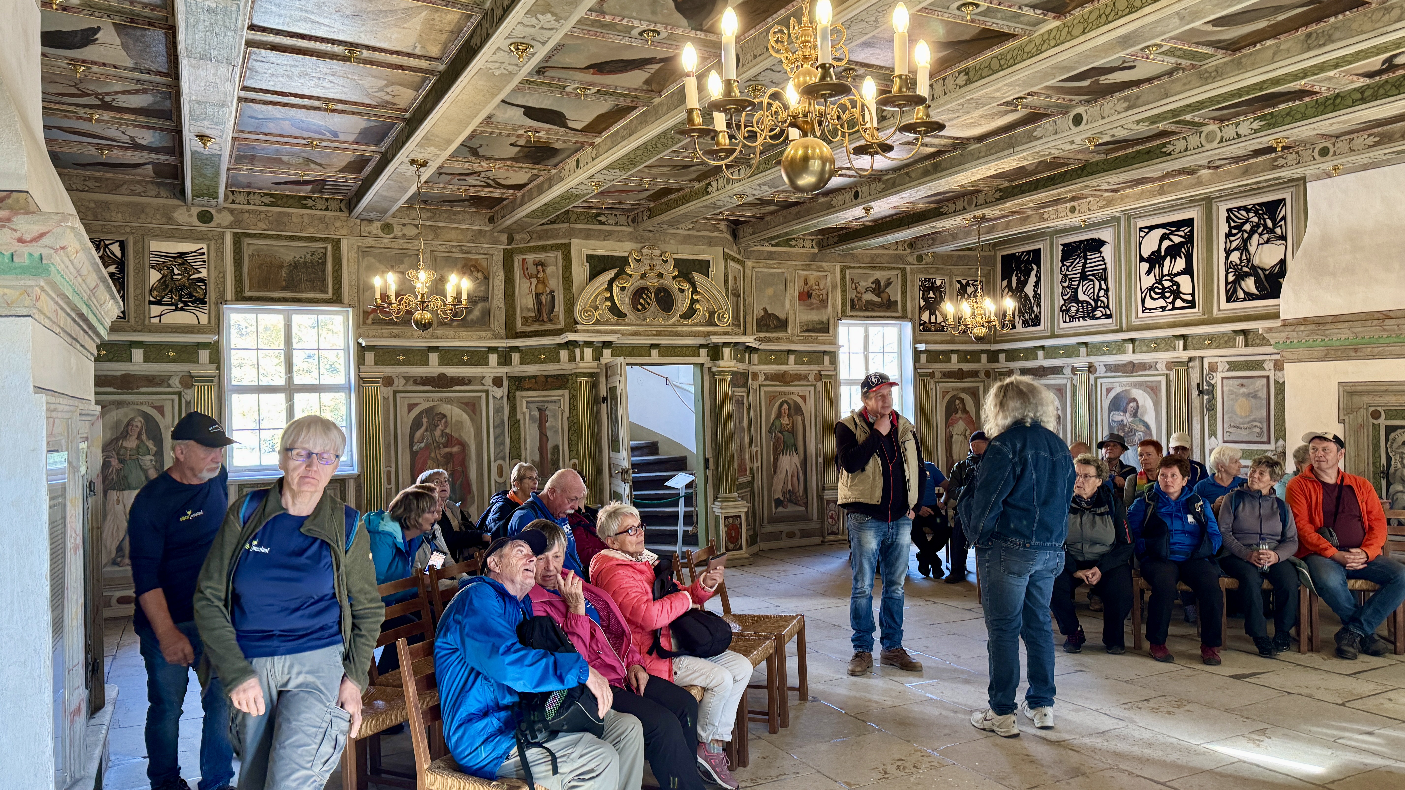 Um 13.00 Uhr empfing uns der Leiter der „Stiftung Hoflößnitz“, Herr Andert, zur Führung im Schloss Hoflößnitz. Er zeigte uns das Berg- und Lustschlösschen und das sächsische Weinbaumuseum. Wir lernten sehr ausführlich die Entwicklung des sächsischen Weinanbaus in unserem Gebiet und die Geschichten der Hoflößnitz kennen.