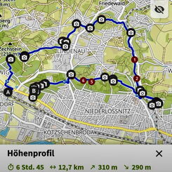 Gut gestärkt und mit viel neuem Wissen ausgestattet setzten wir unsere Wanderung auf dem Weinwanderweg fort. Über den Paradiesberg, vorbei am Wasserturm und der Sternwarte bis zum Schloss Wackerbarth, zurück zu unserem Startpunkt.