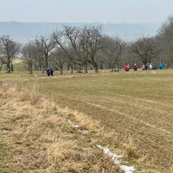 Gut erwärmt liefen wir auf der Höhe durch die schönen Weinberge bis zur „Karpfenschänke“.