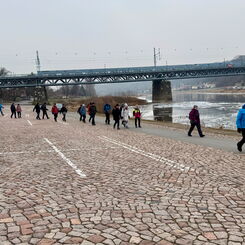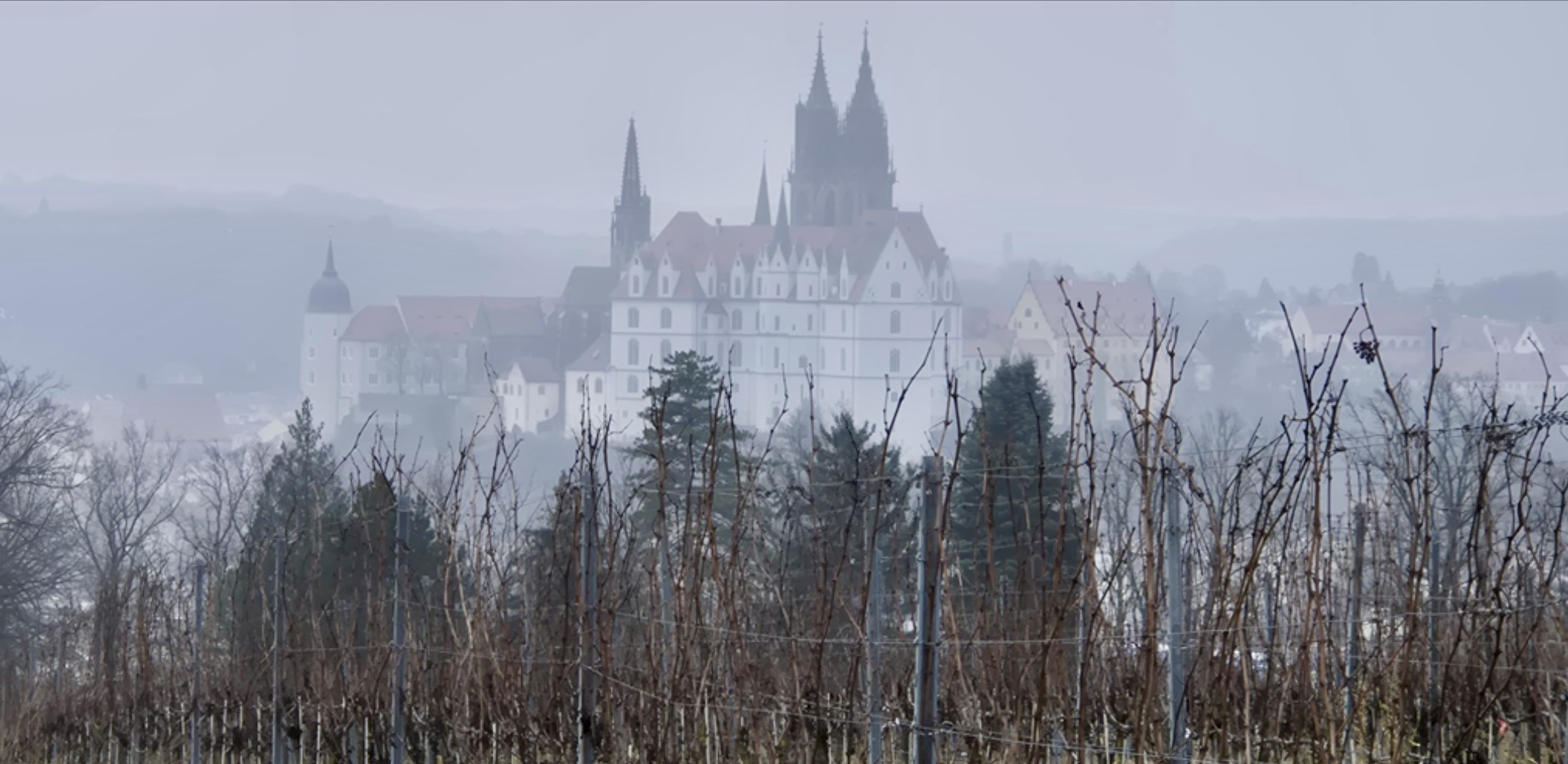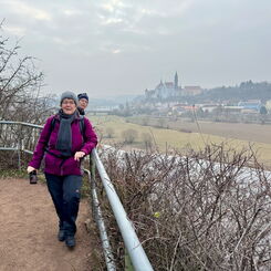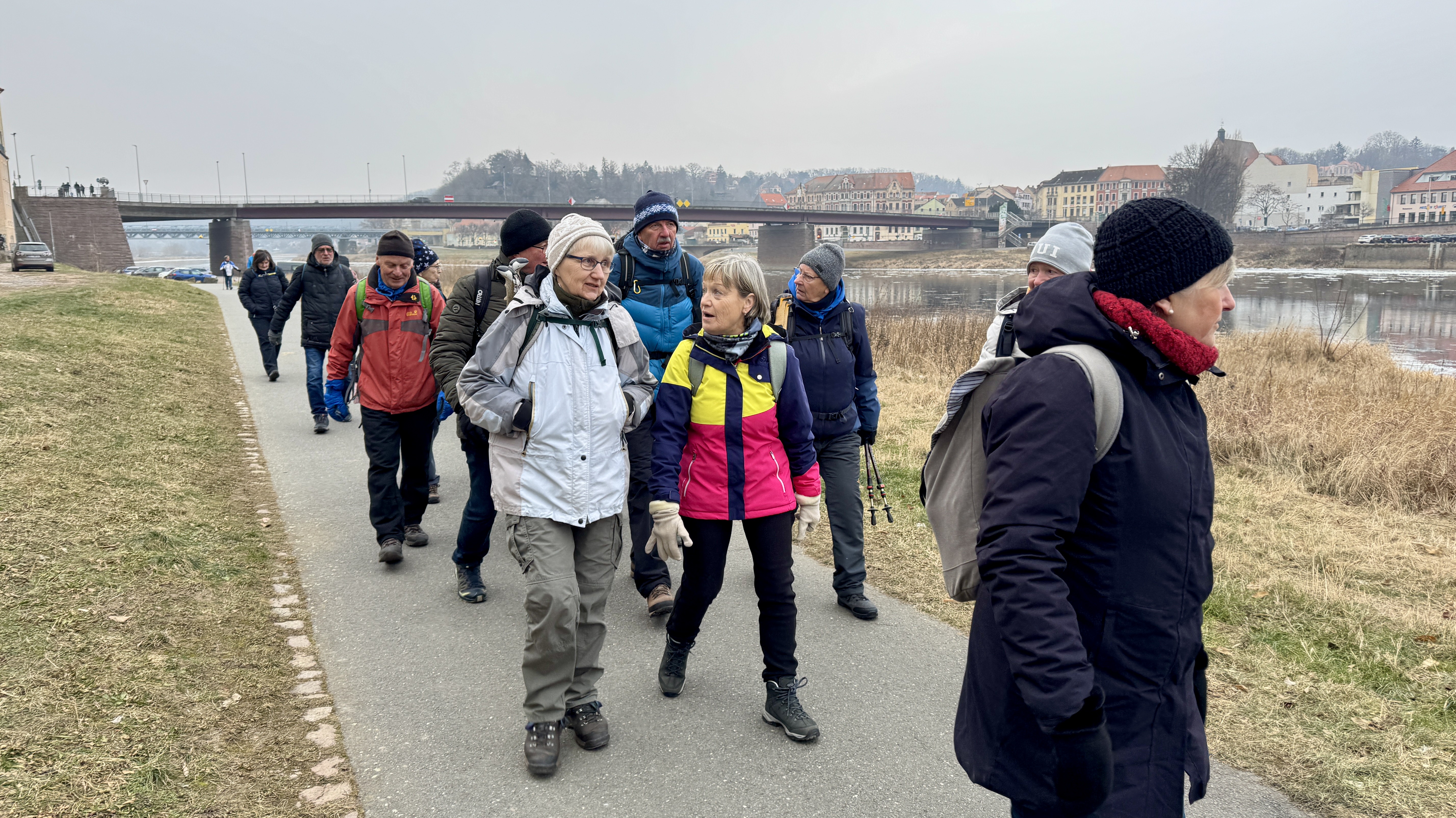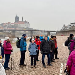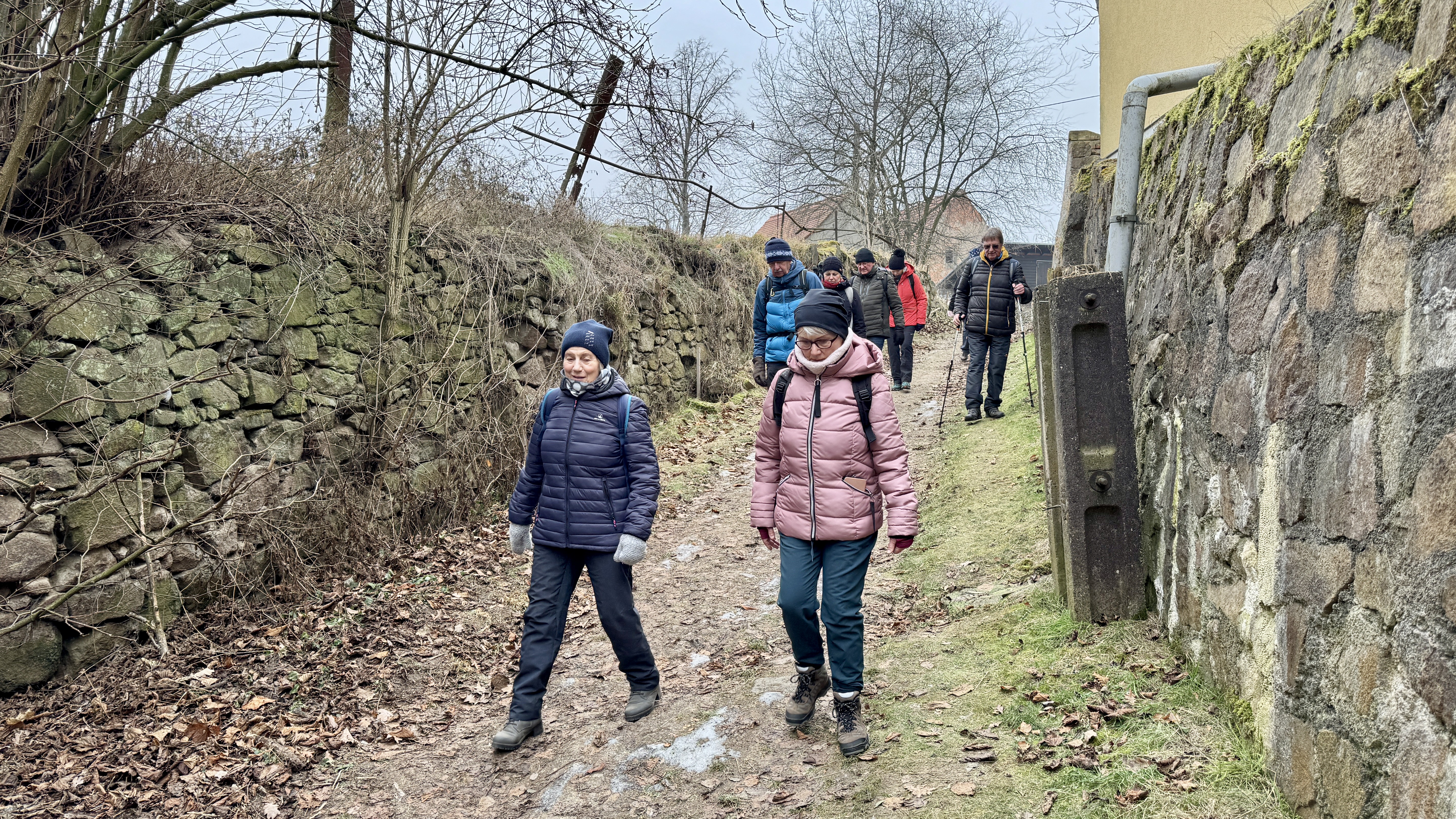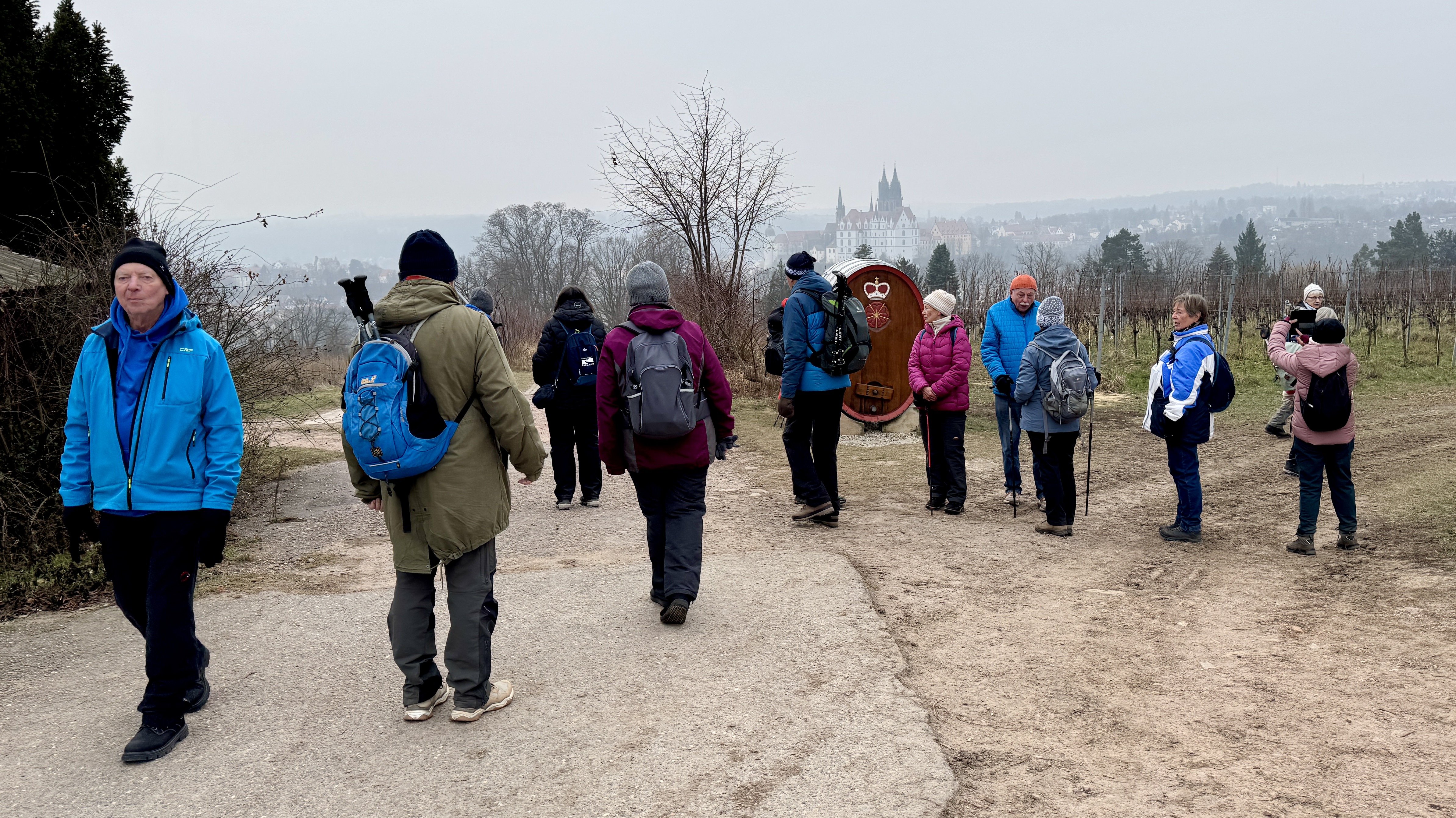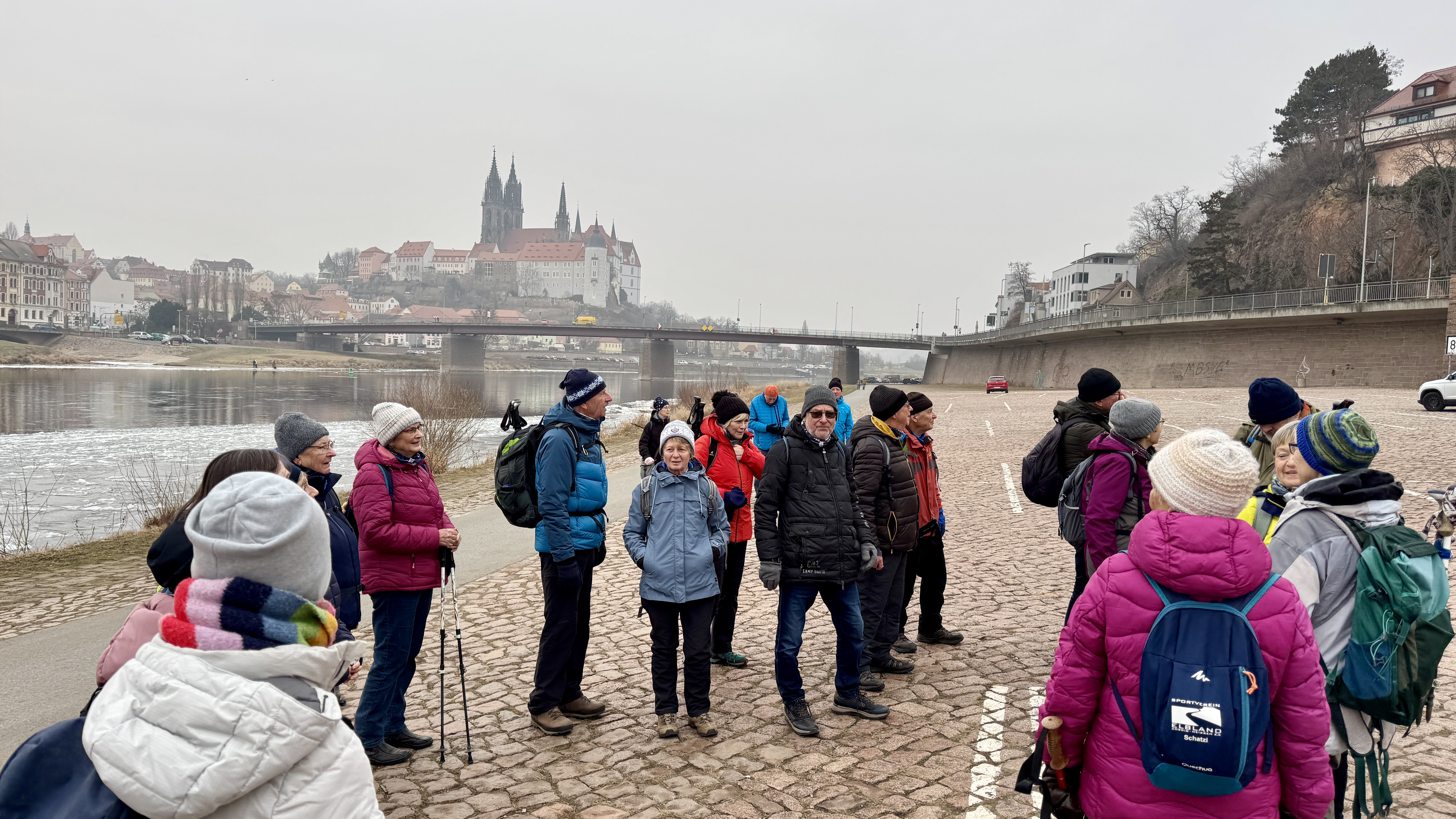 Los ging es am Bahnhof Meißen. Bei leichtem Frost starteten wir Richtung „Heiliger Grund „bergan bis zur Bennokanzel.